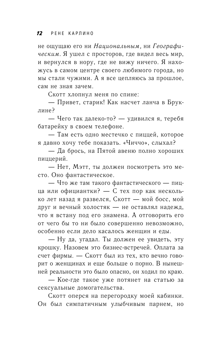 Мы познакомились более десяти лет назад. Формально - давние друзья. Но мне нравится думать, что мы были чем-то большим. Когда-то всей нашей жизнью были музыка, тусовки в Нью-Йорке и фотография. Безумный год! И вот я вижу тебя снова. Ты стоишь на платформе, у самого края, и от скуки покачиваешься на мысочках в ожидании поезда. Произносишь мое имя - я читаю это по твоим губам, - но уже через секунду поезд уносит тебя в даль. Этой встречи хватило, чтобы едва не сойти с ума. Прошло пять недель, а я все ищу встречи с тобой. Просто чтобы сказать "привет". Пригласить в бар. Наверстать упущенное. И да, я знаю, что, говоря о прошлом, мне нет смысла просить у тебя прощение.