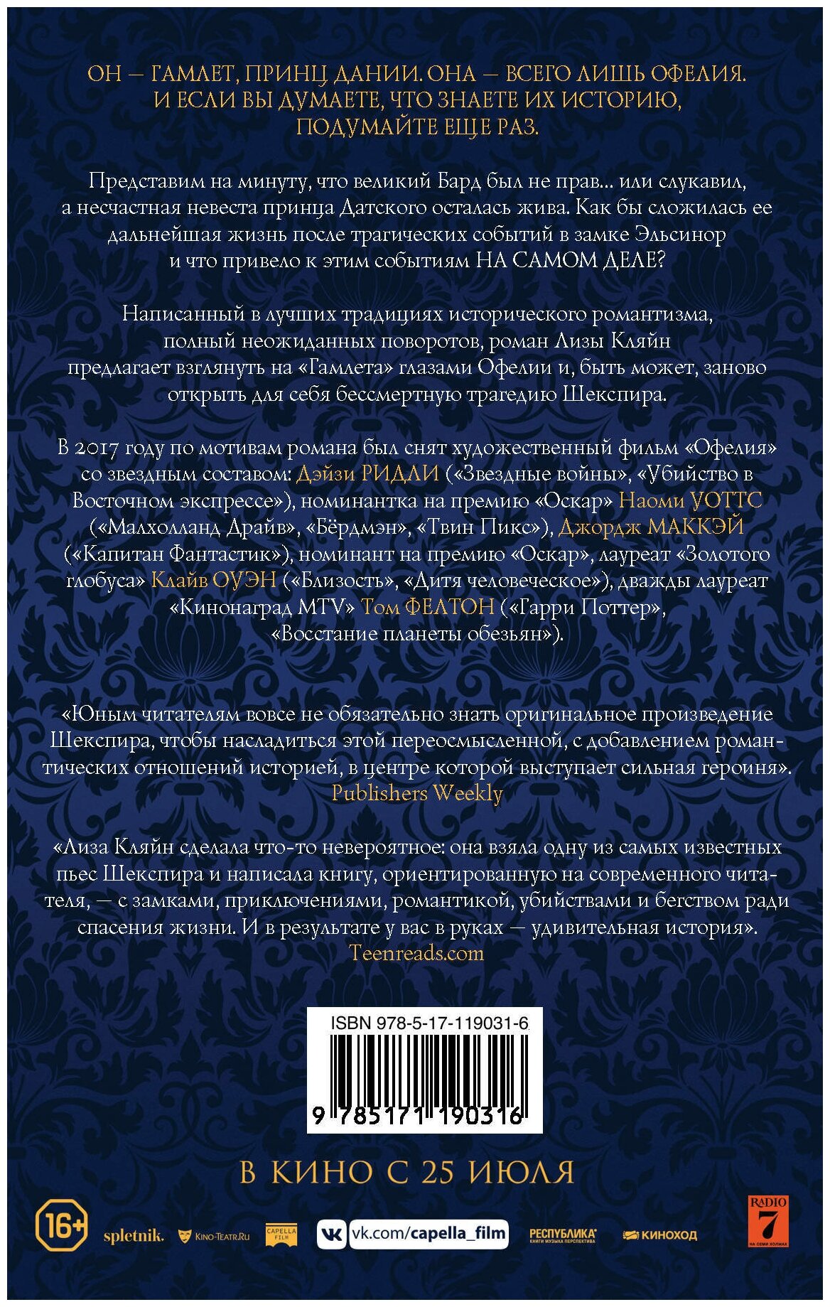 Написанный в лучших традициях исторического романтизма, полный неожиданных поворотов роман Лиы Кляйн предлагает взглянуть на "Гамлета" глазами Офелии и, быть может, заново открыть для себя бессмертную трагедию Шекспира.