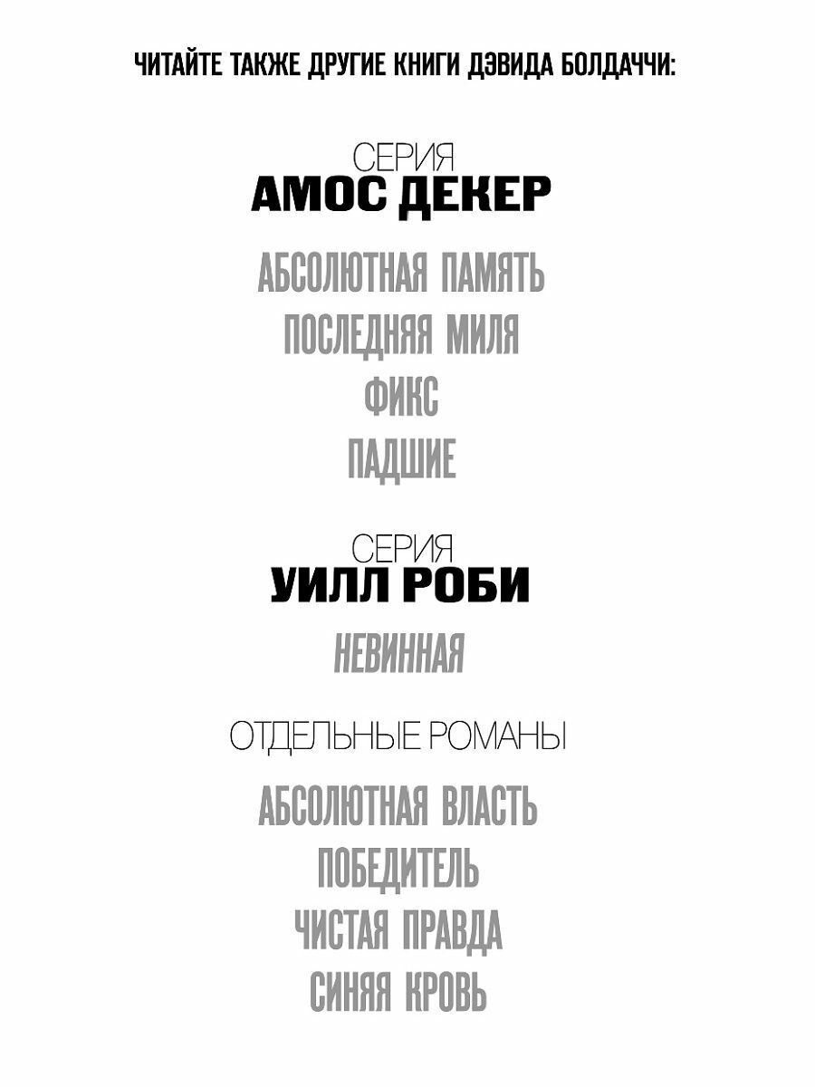 | Серия | Дэвид Болдаччи. Гигант мирового детектива |