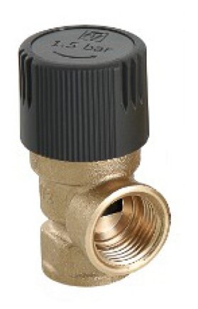 Клапан предохранительный нерегулируемый, c фиксированной заводской настройкой 1,5/3,0/6 бар (для удобства пользования введена цветовая маркировка: черный колпачок - 1,5 бара, красный - 3, желтый - 6 бар). Обеспечивает защиту от превышения давления водогрейных котлов, бойлеров, сосудов под давлением, систем отопления, напорных трубопроводов сбросом рабочей среды (вода, гликолевые незамерзающие теплоносители, воздух, природный, сжиженный газ и т.д.) в окружающую среду либо дренажный трубопровод. Область применения - системы тепловой мощностью не более 43,7 кВт. Максимальная рабочая температура - 120 градусов Цельсия. Предусмотрена возможность ручного открытия клапана предохранительного для проверки работоспособности, профилактики залипания золотниковой обоймы. Резьба присоединения - внутренняя, 1/2 .