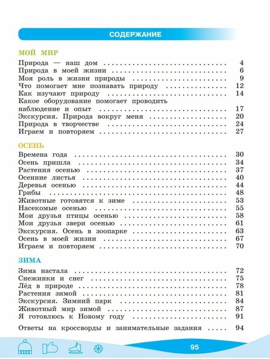 Структура пособия предполагает четыре модуля, соответствующих временам года (осень, зима, весна, лето). Школьники учатся понимать характер явлений и процессов в природе и их смысл, осознают единство и целостность природы, осваивают доступные методы естественных наук (наблюдение, запись, измерение, сравнение и др.), основы экологической грамотности, изучают нормы поведения в мире живой природы. Это поможет им при дальнейшем изучении естественнонаучных учебных предметов (биологии, физики, естествознания и др.). По своим функциям данное пособие является организатором самостоятельной образовательной деятельности, что достигается разнообразием форм, методов и приёмов.