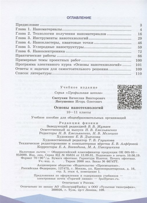 Предлагаемое пособие реализует требования ФГОС и обеспечивает организацию элективных курсов в средней школе. Содержание пособия направлено на развитие естественнонаучного профильного обучения для формирования у обучающихся мотивации к профессиональному самоопределению в научной и инженерной областях. Отбор содержания учебного материала с одной стороны опирается на полученные ранее знания обучающихся, с другой стороны, значительно расширяет их кругозор. Содержание пособия обеспечивает сопровождение образовательной деятельности учащихся в разных формах: учебное занятие, практическая работа, учебный проект и др. Материал пособия не только познакомит учащегося с современными исследованиями в области системного нанотехнологий, но и поможет в выборе темы для самостоятельного проекта по предмету “Индивидуальный проект”.