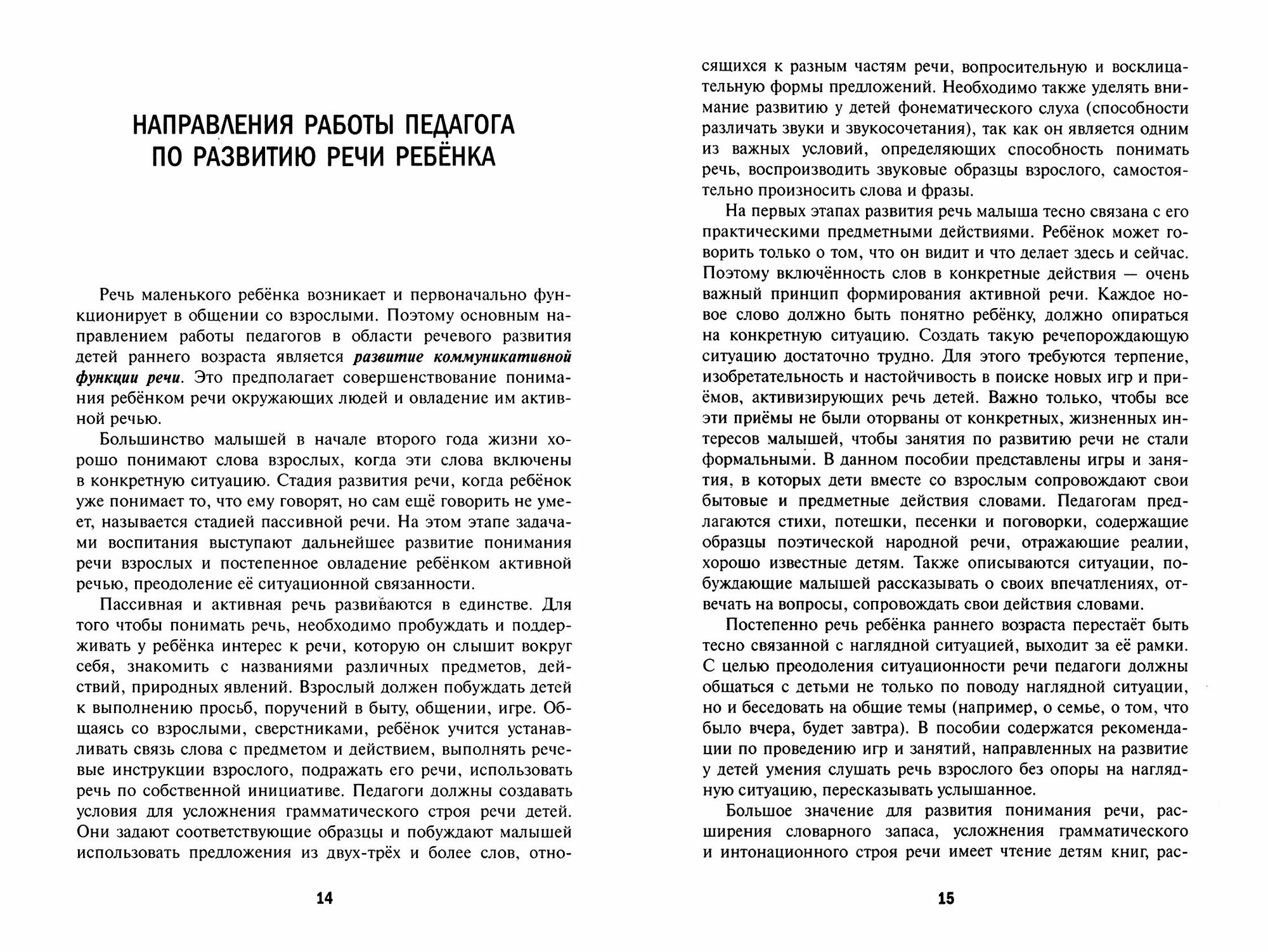 Методические материалы к комплексной образовательной программе для детей раннего возраста "Первые шаги" описывают основные направления работы педагога в образовательной области "Речевое развитие". В пособии подробно характеризуются этапы становления речи в раннем возрасте - от периода автономной речи к возникновению первых активных слов и до усвоения грамматических азов языка, описаны педагогические приёмы, которые используются в повседневной жизни для речевого развития ребёнка. В пособии представлены также специальные игры и занятия на развитие пассивной и активной речи.
