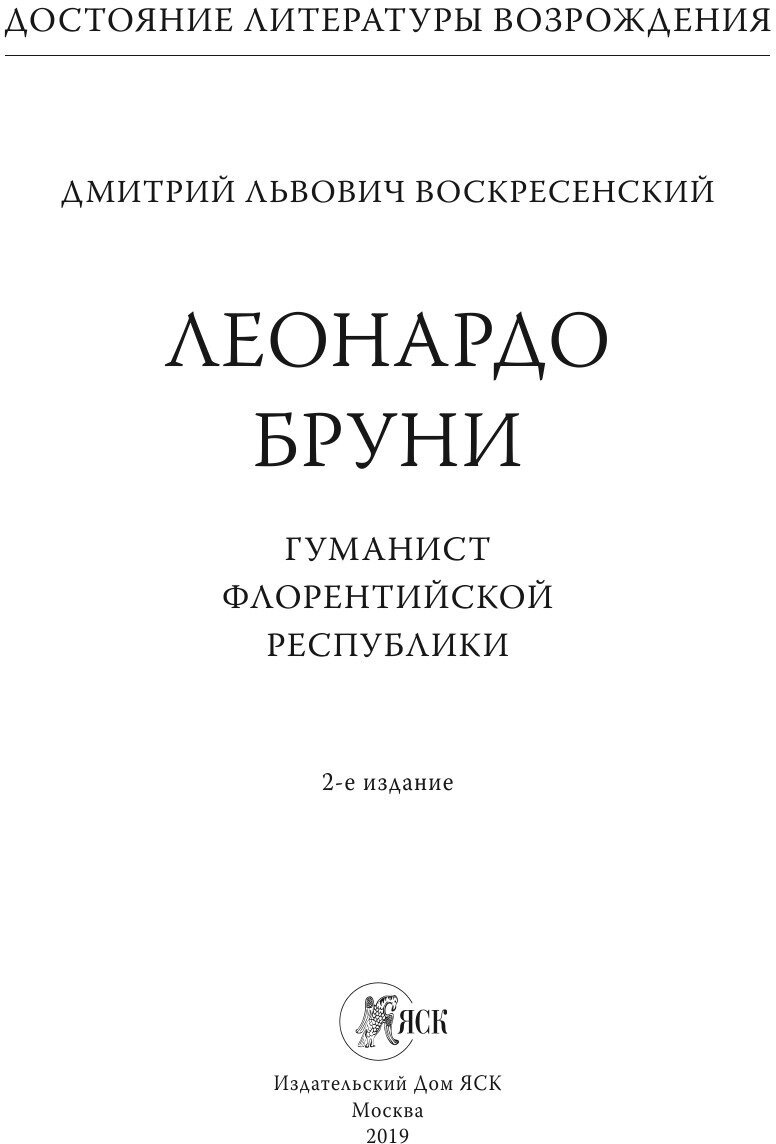 Леонардо Бруни: гуманист Флорентийской республики (Д. Л. Воскресенский); Языки славянской культуры, 2019