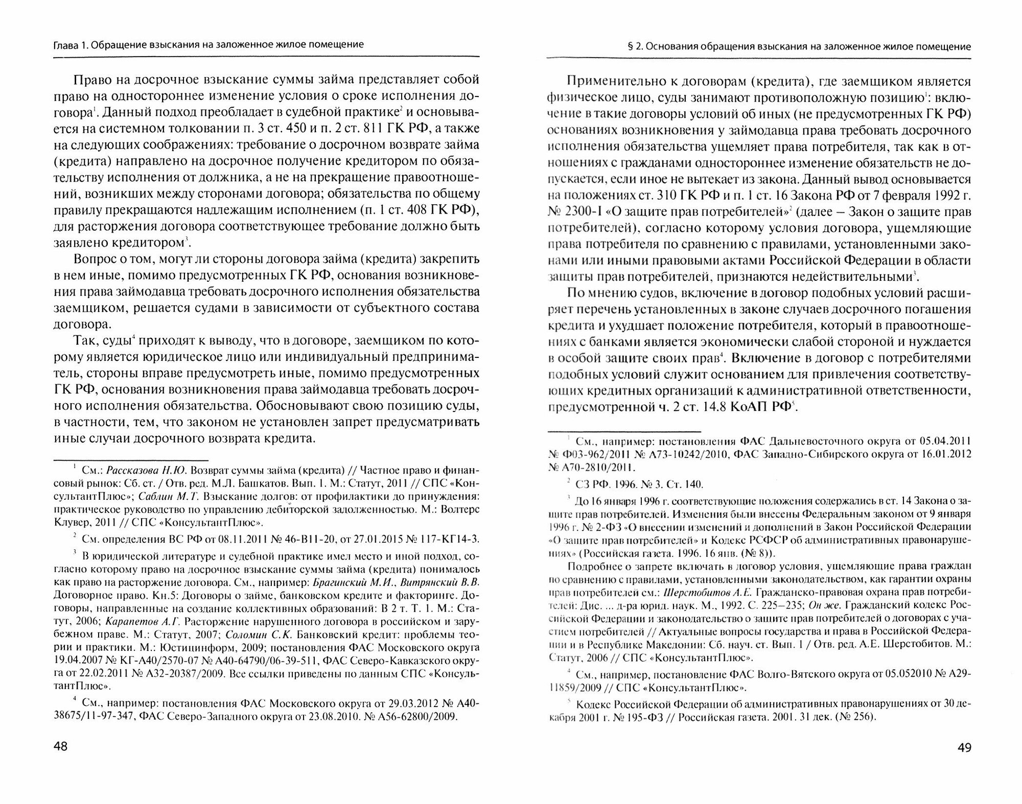 В работе рассматриваются вопросы о правовой природе и основаниях обращения взыскания на заложенное имущество, роли требования о досрочном исполнении обеспеченного обязательства в механизме обращения взыскания на заложенное имущество. Основное внимание сосредоточено на системе гарантий защиты физических лиц при обращении взыскания на заложенные ими жилые помещения: последовательно рассматриваются условия, при которых обращение взыскания не допускается; гарантии, направленные на защиту от необоснованного отчуждения заложенного жилья; гарантии, призванные обеспечить справедливую цену реализации заложенного жилья и снижение долгового бремени гражданина после его реализации. Работа написана с использованием обширного материала практики судов общей юрисдикции (и арбитражных судов), зарубежных источников.