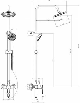 | ВКоробке | Душевая стойка - 1 шт. Шланг - 1 шт. Верхний душ - 1 шт. Смеситель - 1 шт. Держатель для душа - 1 шт. Эксцентрик - 2 шт. Инструкция - 1 шт. |