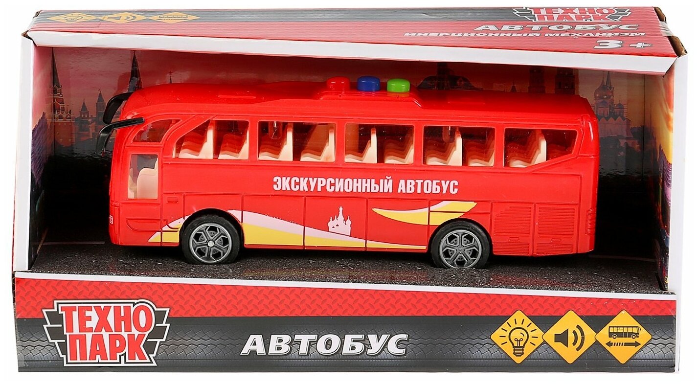 Автобус ТМ «Технопарк» — это коллекционная модель, с которой можно играть.Особенности:звуксветинерционный механизм.Автобус ТМ «Технопарк» станет отличным подарком для маленького автолюбителя или взрослого коллекционера. Дети могут играть с машинкой в сюжетно-ролевые игры. Такие игры помогают им освоить новые социальные роли и стимулируют развитие воображения.Игрушка имеет инерционный механизм: - потяните машинку на себя- отпустите и он тут же поедет.Работает от 3 батареек типа LR44.
