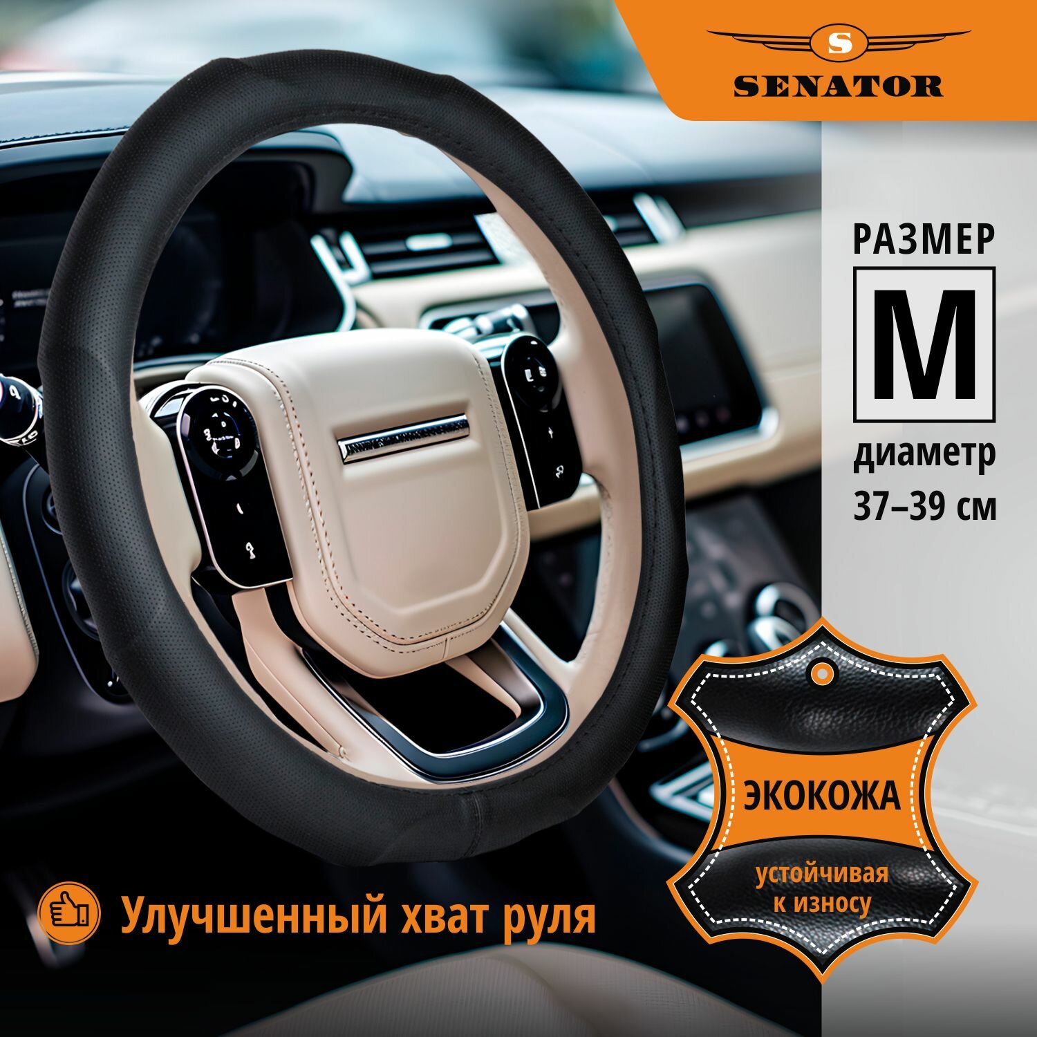 Оплетка Senator обладает следующими преимуществами: быстрая установка, противоскользящее покрытие материала, удобный хват и т.д.