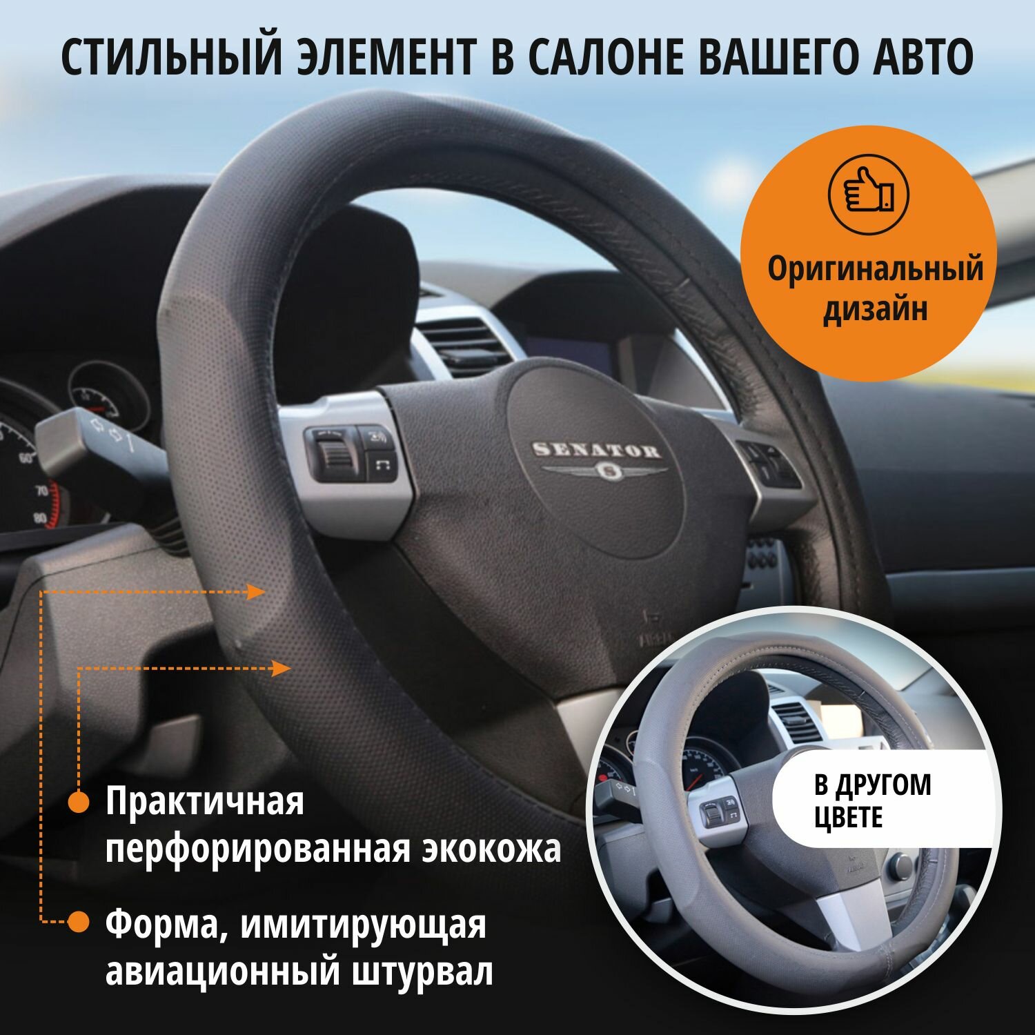 Также оплетка Senator имеет стильный дизайн и подчеркнет индивидуальность интерьера салона вашего автомобиля.