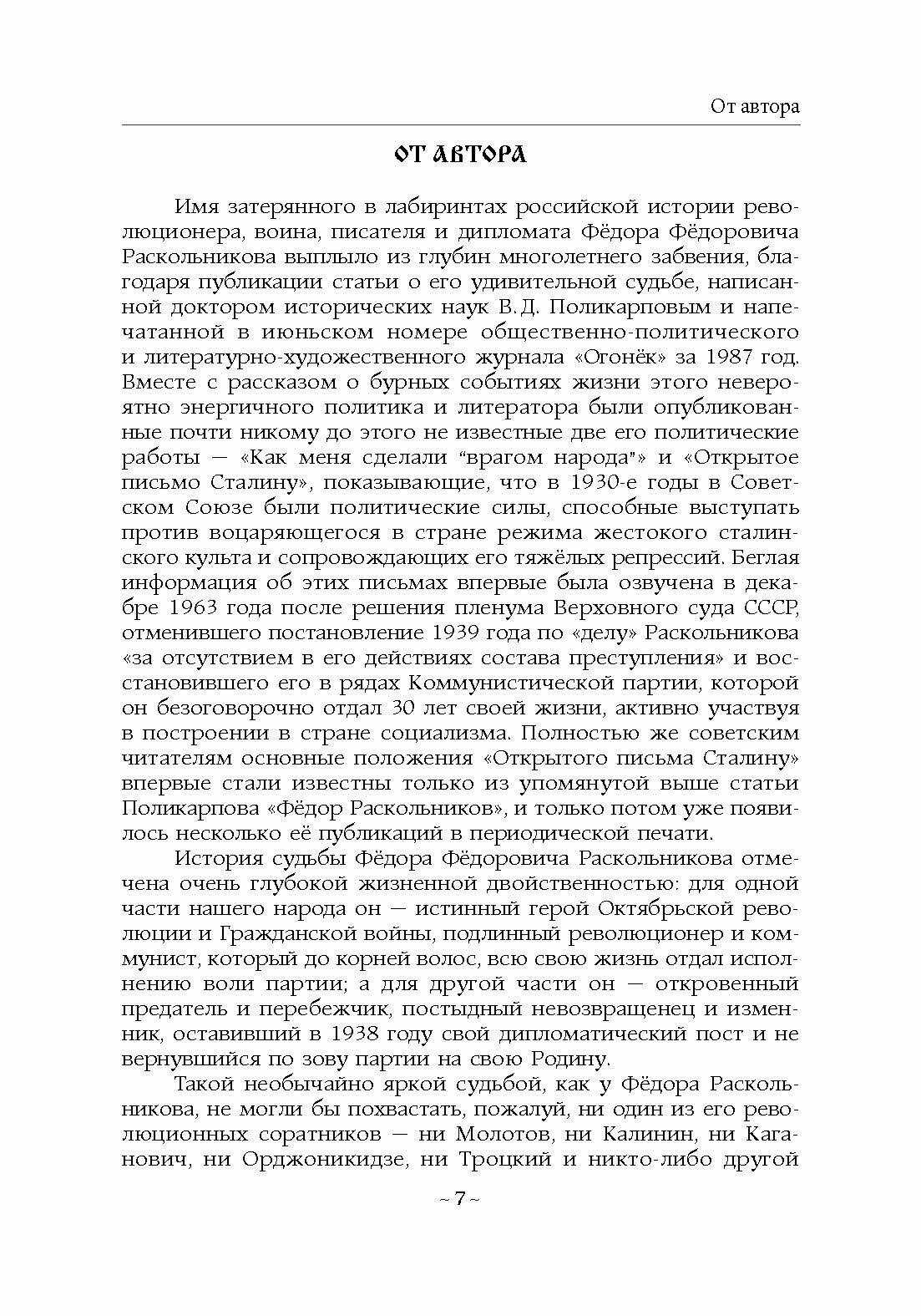 Фигура Фёдора Раскольникова в истории русской революции является далеко не случайной - со школьной скамьи он боролся против царского режима и затем вместе с Лениным, Троцким, Молотовым и другими известными революционерами сражался за установление советской власти. Был секретарём газеты "Правда", заместителем председателя Кронштадтского Совета, замнаркома по морским делам, командующим Каспийской и Балтийской флотилиями, членом Реввоенсовета, редактором журналов "Молодая гвардия", "Красная новь" и издательства "Московский рабочий", полпредом СССР в Афганистане, Эстонии, Дании и Болгарии, журналистом и писателем. Был женат на знаменитой революционерке и поэтессе Ларисе Рейснер, бывшей любовницей Гумилёва и Троцкого; встречался с Есениным, Буниным, Северяниным и Пильняком, враждовал с Булгаковым. А в 1939 году был объявлен "врагом народа" и заочно приговорён к расстрелу. В зарубежной печати он опубликовал "Открытое письмо Сталину", разоблачавшее Иосифа Виссарионовича как кровавого диктатора. В том же году Раскольников погиб при таинственных обстоятельствах в Ницце, где его, похоже, выбросили из окна агенты Берии…