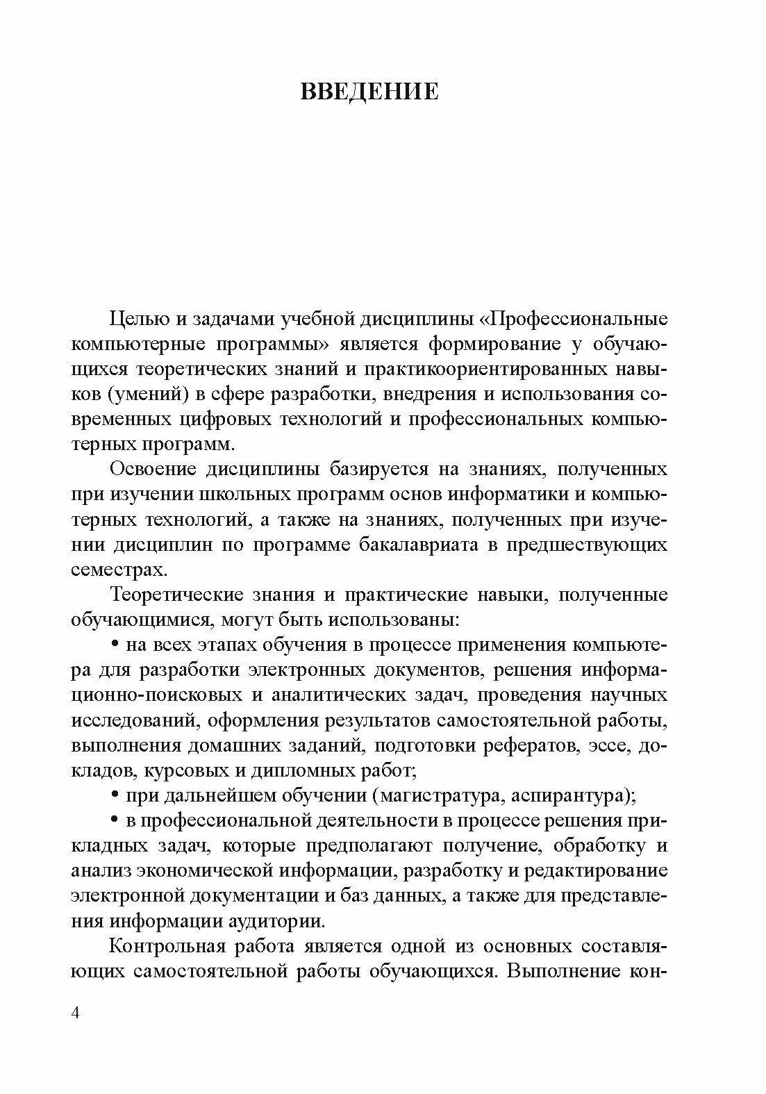 В издании отражены основные требования к самостоятельному выполнению контрольной работы, а также сами задания и рекомендации по их выполнению и оформлению. Методические рекомендации составлены на основе учебного плана и рабочей программы дисциплины "Профессиональные компьютерные программы" для обучающихся по направлению 38.03.01 "Экономика" профиль "Финансы и кредит" и могут быть использованы студентами высших учебных заведений, изучающими прикладные информационные технологии и профессиональные компьютерные программы.