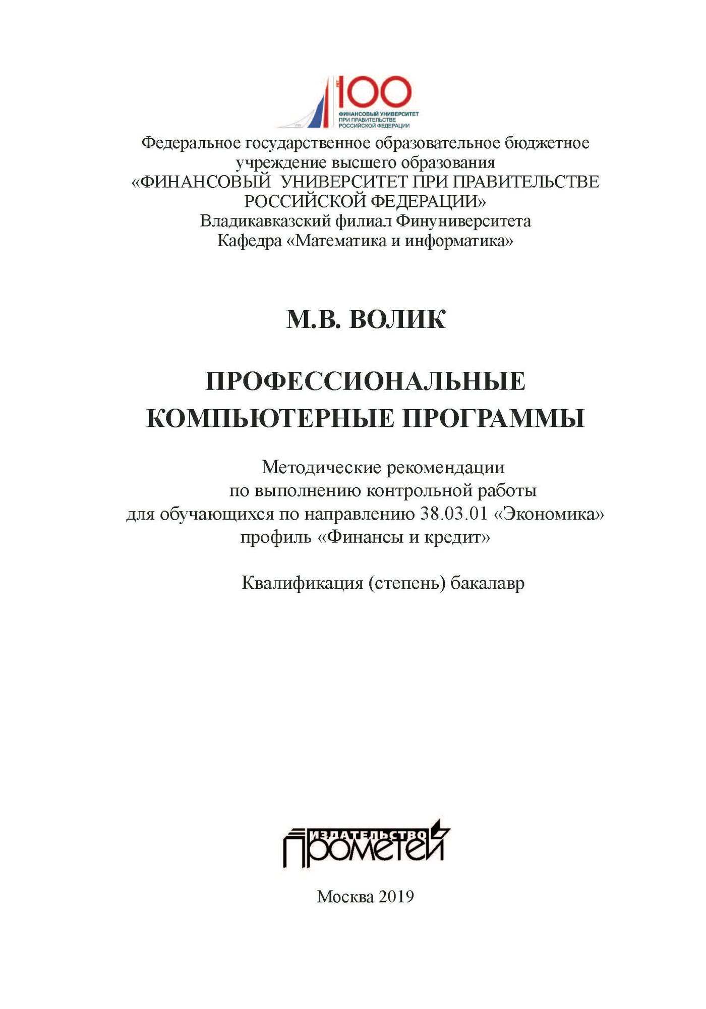 Профессиональные компьютерные программы. Методические рекомендации по выполнению контрольной работы (Волик Мария Владимировна); Прометей, 2019