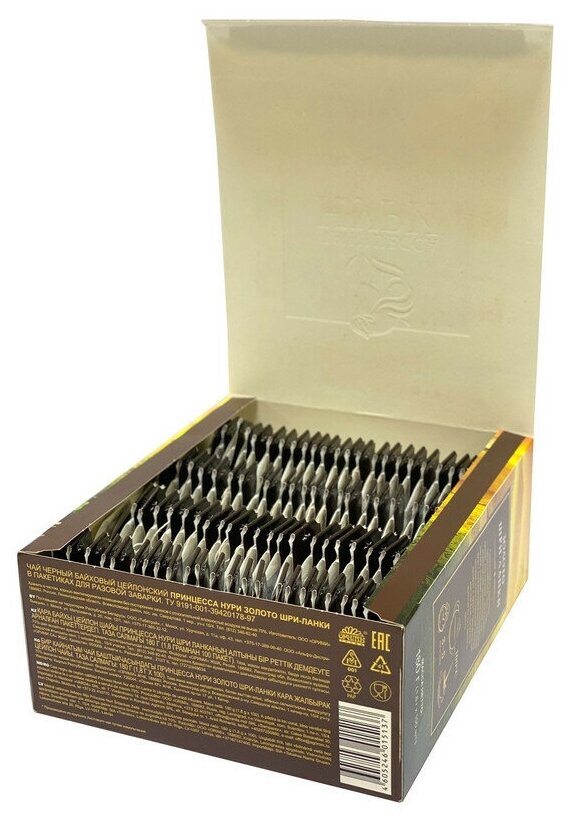 Чай черный байховый цейлонский Принцесса Нури Золото Шри-Ланки в пакетиках для разовой заварки.