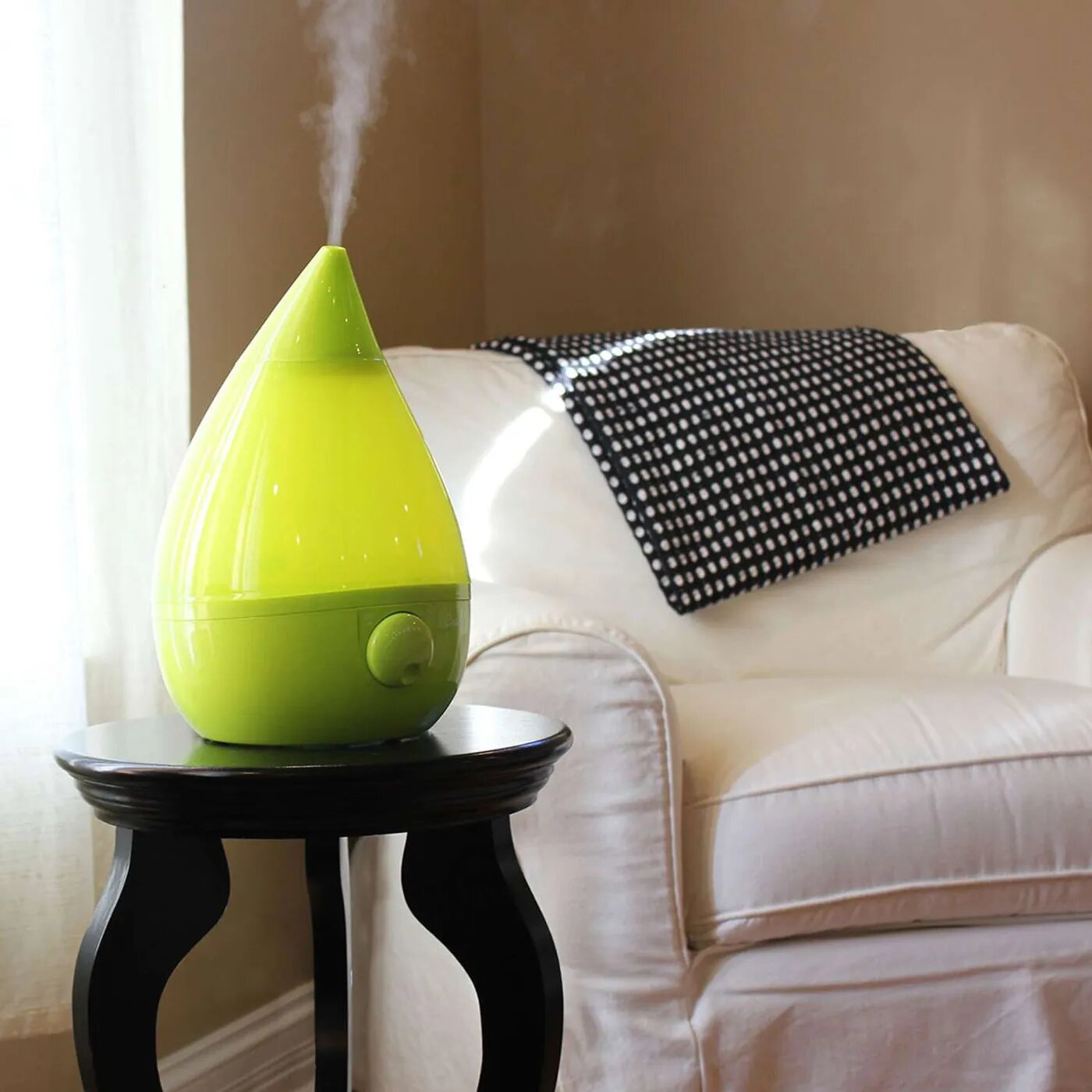 Увлажнитель CRANE EE-5301 "Капля" насыщает воздух дополнительной влагой. Он работает на ультразвуке. Его использование должно быть правильно организовано: положение над 1,5 метров от пола, направление не на деревянные и бумажные предметы. Своевременное наполнение водой и расположение в недоступном для маленького ребенка месте продлит эксплуатацию изделия.