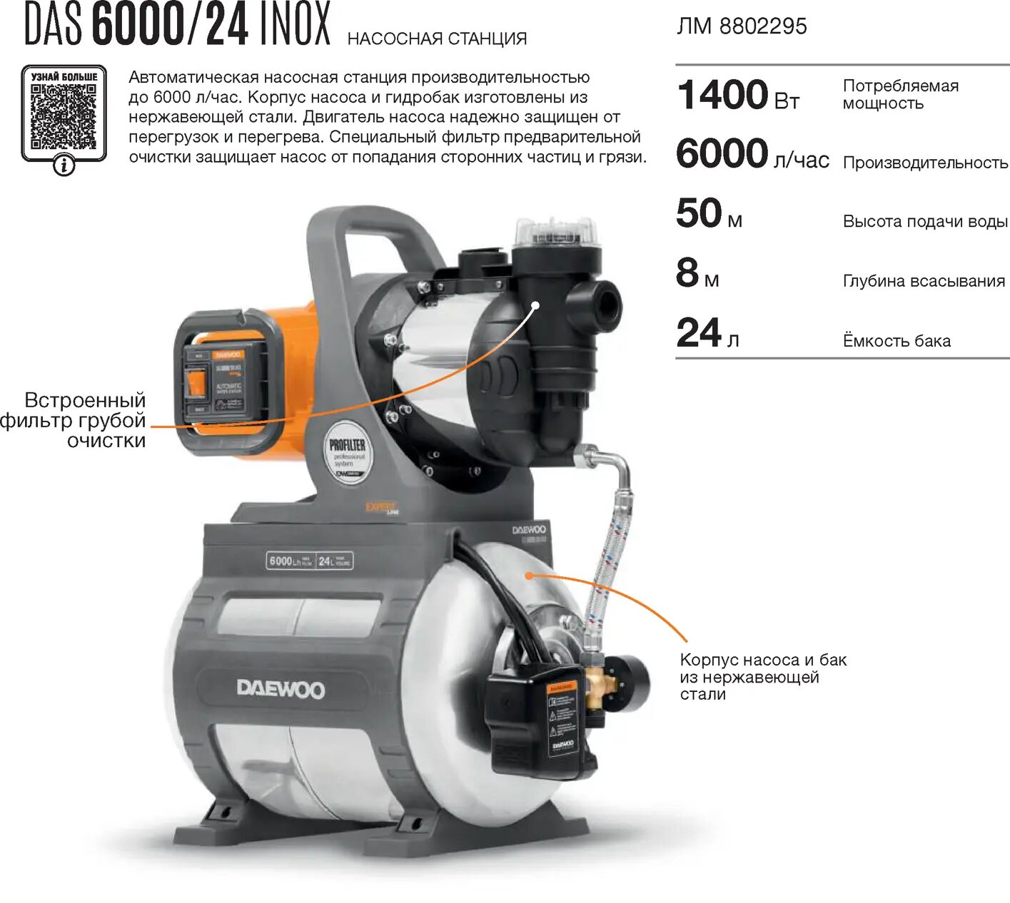 Насосная станция Daewoo Das 6000/24 inox