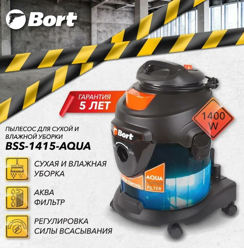 Пылесос BORT BSS-1415-Aqua сухая влажная уборка синий