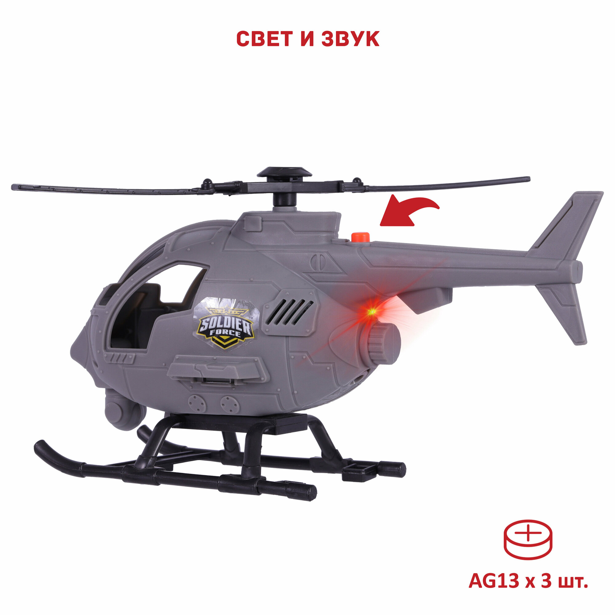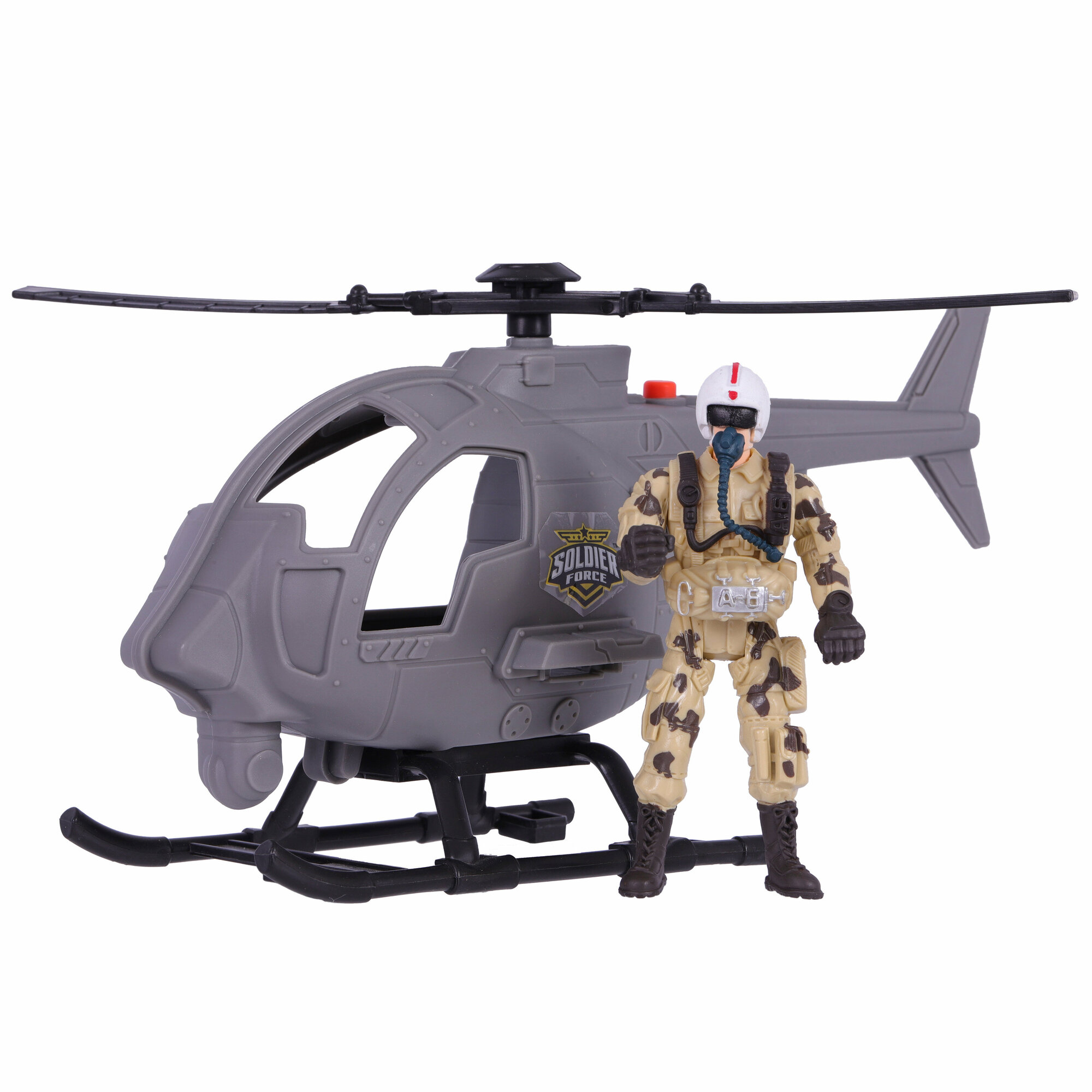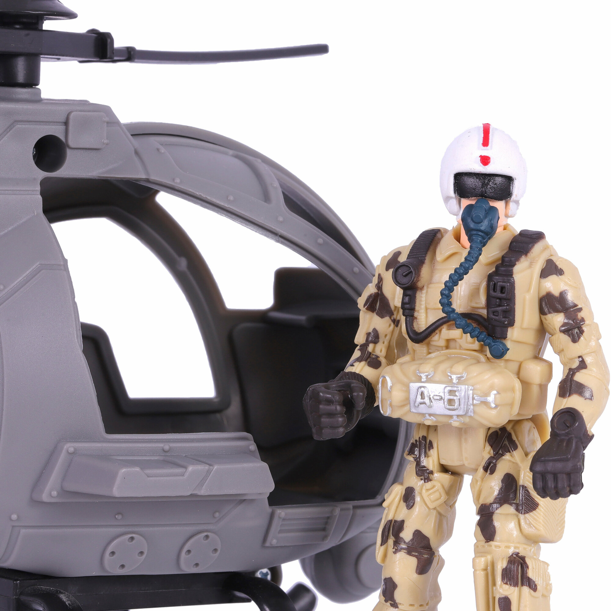 Вертолет с подвижным пропеллером, кабиной пилота, куда можно разместить фигурку солдата, и световыми и звуковыми эффектами.