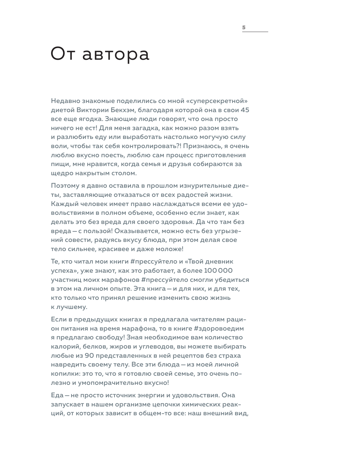 Восхищаюсь Натальей, ее целеустремленностью, мотивированностью. Столько девушек, благодаря ей, взялись за свое тело и задумались о здоровом питании. Эта книга, как Прессуй тело и дневник, очень яркая, фото еды невероятные, слюнки так и текут. Кроме рецептов, им собственно и посвящена эта часть, книга дополнена полезной информацией. Очень рекомендую всем, как и первые книги Натальи.