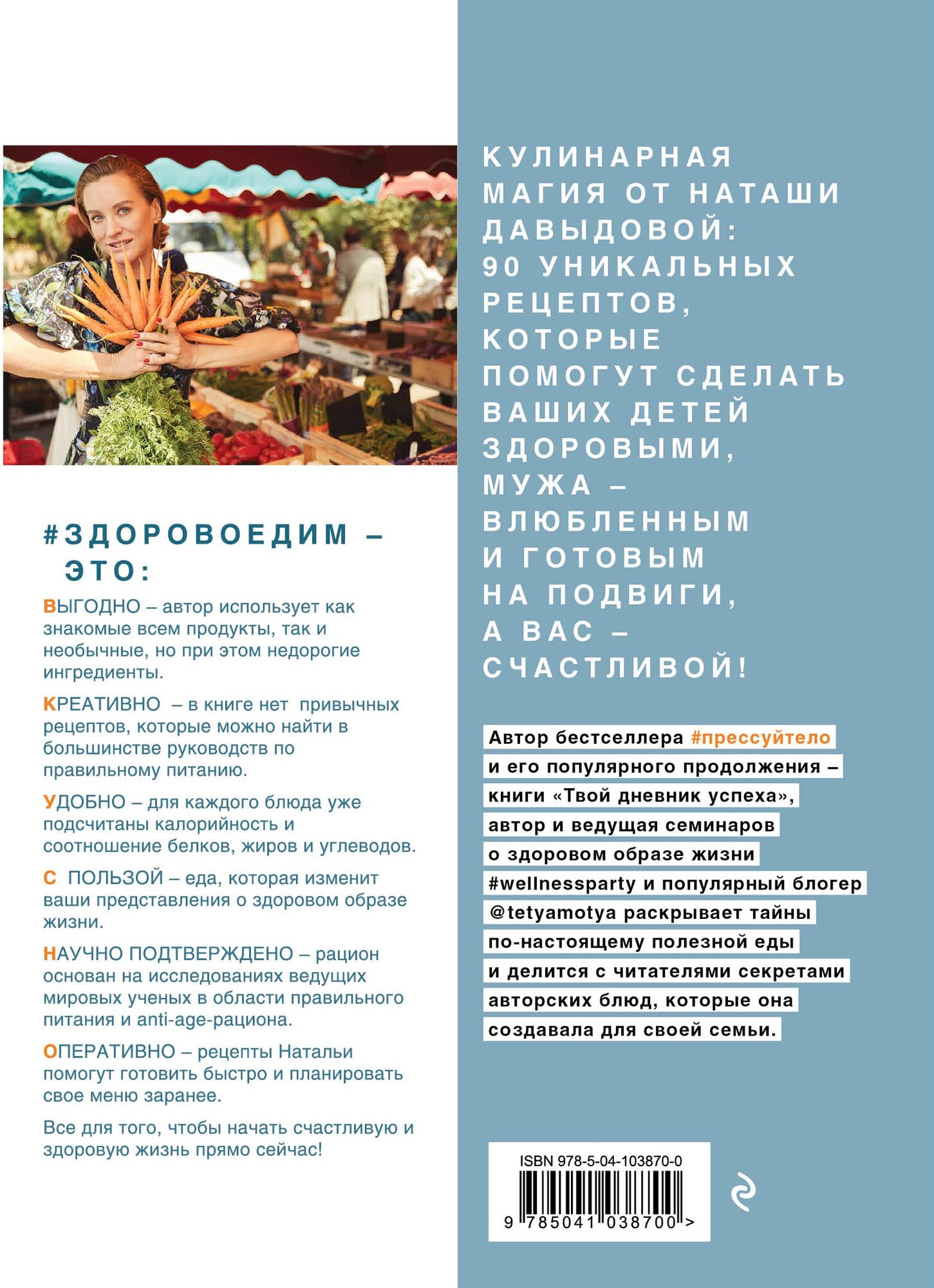 Автор бестселлера #прессуйтело и его популярного продолжения - книги "Твой дневник успеха", автор и ведущая семинаров о здоровом образе жизни #wellnessparty и популярный блогер @tetyamotya раскрывает тайны по-настоящему полезной еды и делится с читателями секретами авторских блюд, которые она создавала для своей семьи.