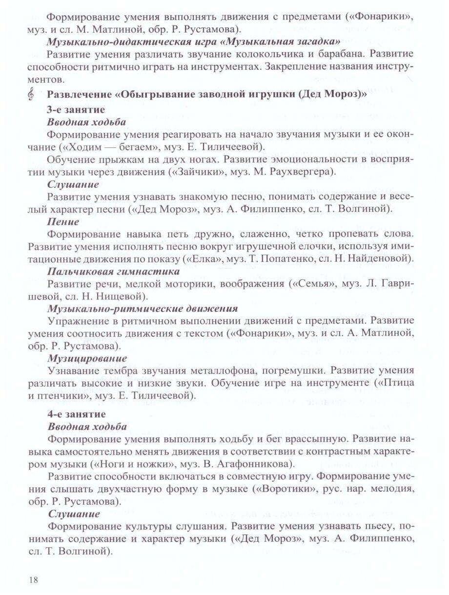В пособии представлено календарное планирование образовательной деятельности по музыкальному развитию в группе для детей младшего дошкольного возраста (с 2 до 3 лет). Плановые музыкальные занятия позволяют воспитать у детей интерес к ним, желание слушать музыкальные произведения, подпевать, слушая несложные песенки, двигаться под музыку, играть на детских музыкальных инструментах.