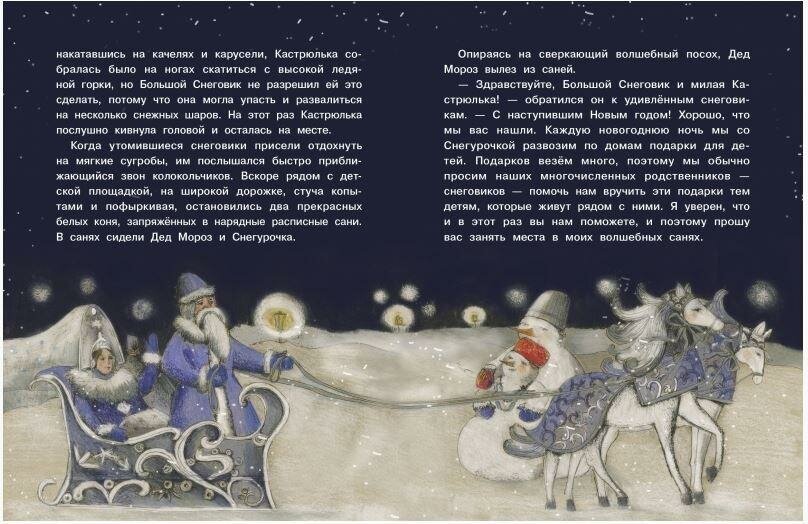 Как по мне, книга для деток 4+. Моему сыну 4х лет очень запомнилась история про снеговичков, которые помогали Дедушке Морозу разнести подарки. Так вот, оказывается Дед Мороз не всегда приносит то, что заказывали детки лишь потому, что в его мешке огромные подарки не могут поместиться и в сани не влезут... Ведь места в санях не так много!