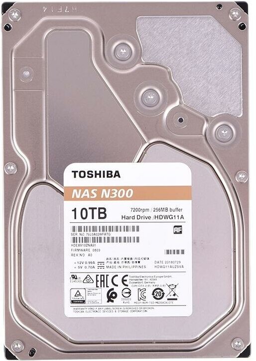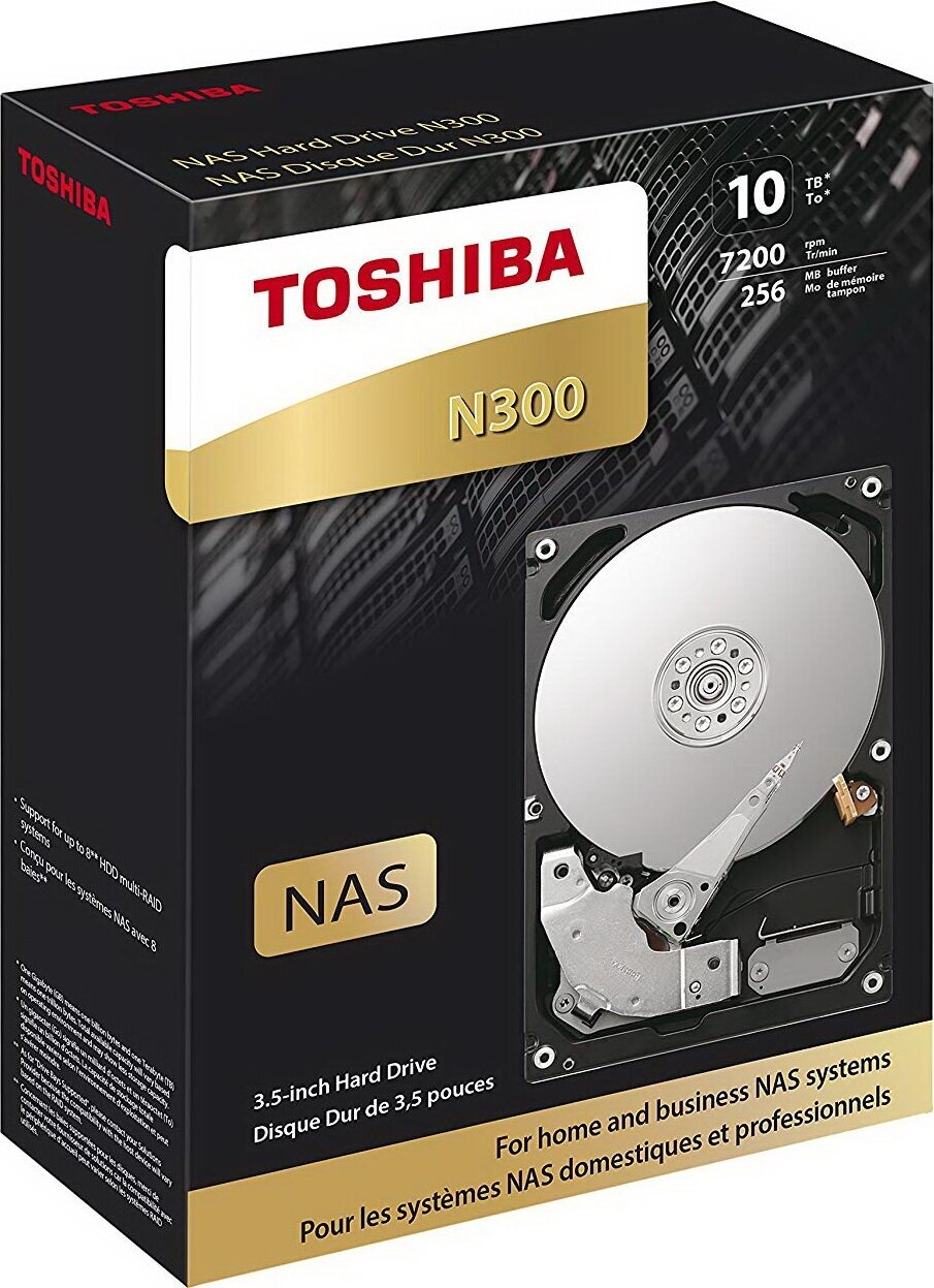 Жесткие диски и сетевые накопители Toshiba 3,5-дюймовый жесткий диск N300 NAS от Toshiba обеспечивает беспрецедентную надежность для NAS и других высокопроизводительных систем хранения. Он оптимизирован для соответствия требованиям надежности, выносливости, производительности и масштабируемости хранилища большой емкости 24 часа в сутки 7 дней в неделю для личного, домашнего офиса и малого бизнеса. N300 доступен в емкостях до 10 ТБ.