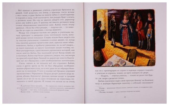 Сама книга очень красивая, у неё яркая, красочная обложка, страницы очень плотные, не просвечивает текст. В ней достаточно роскошных, живописных иллюстраций для лучшего понимания текста ребёнком. Картинки встречаются не на каждой странице, попадается по два-три разворота без иллюстраций.