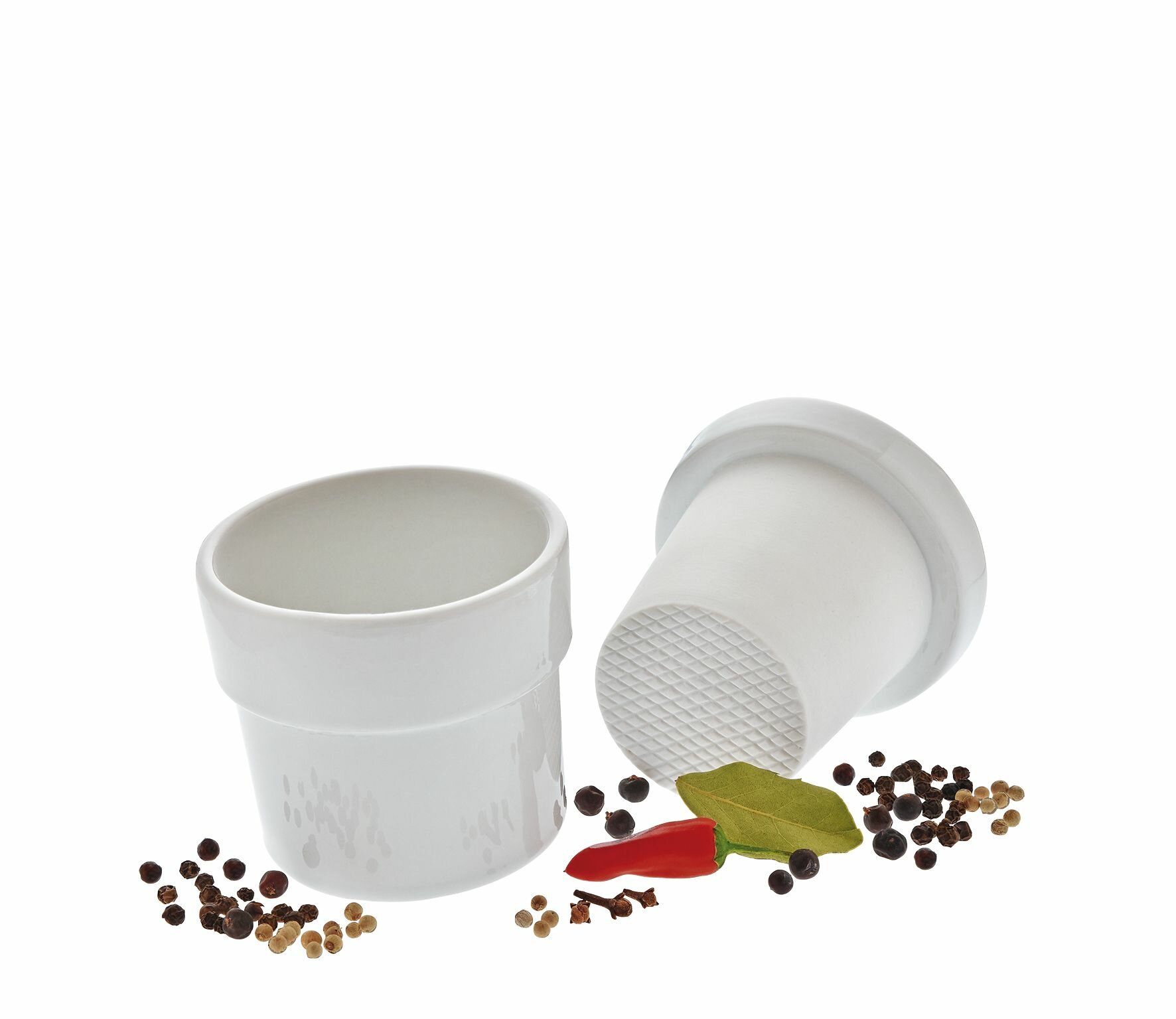 Ступка с пестиком d-9,5 см, фарфор от немецкого бренда KUCHENPROFIИзготовлена из высококачественного фарфора, ступка гигиенична, не впитывает запахи приправ и влагу, проста в использовании и уходе. Ступка с пестиком предназначена для измельчения различных специй и трав, орехов, чеснока, каперсов. Эта ступка прослужит Вам долгое время, а также украсит интерьер и станет отличным подарком для любителей стильных вещей.