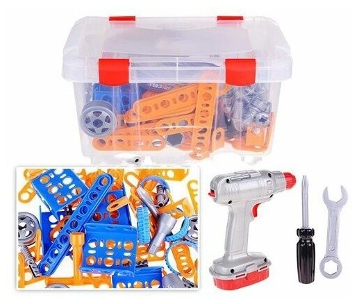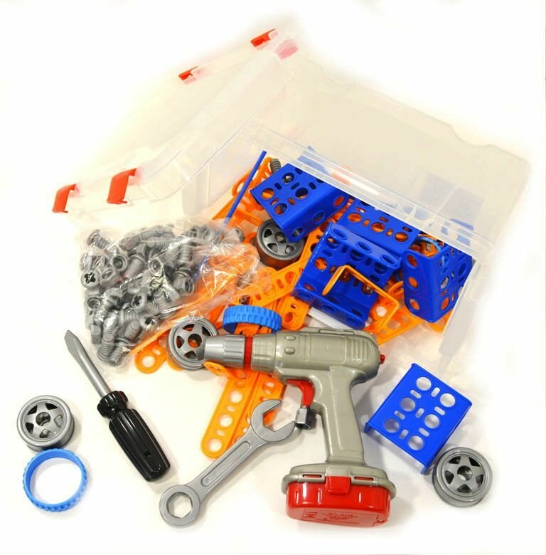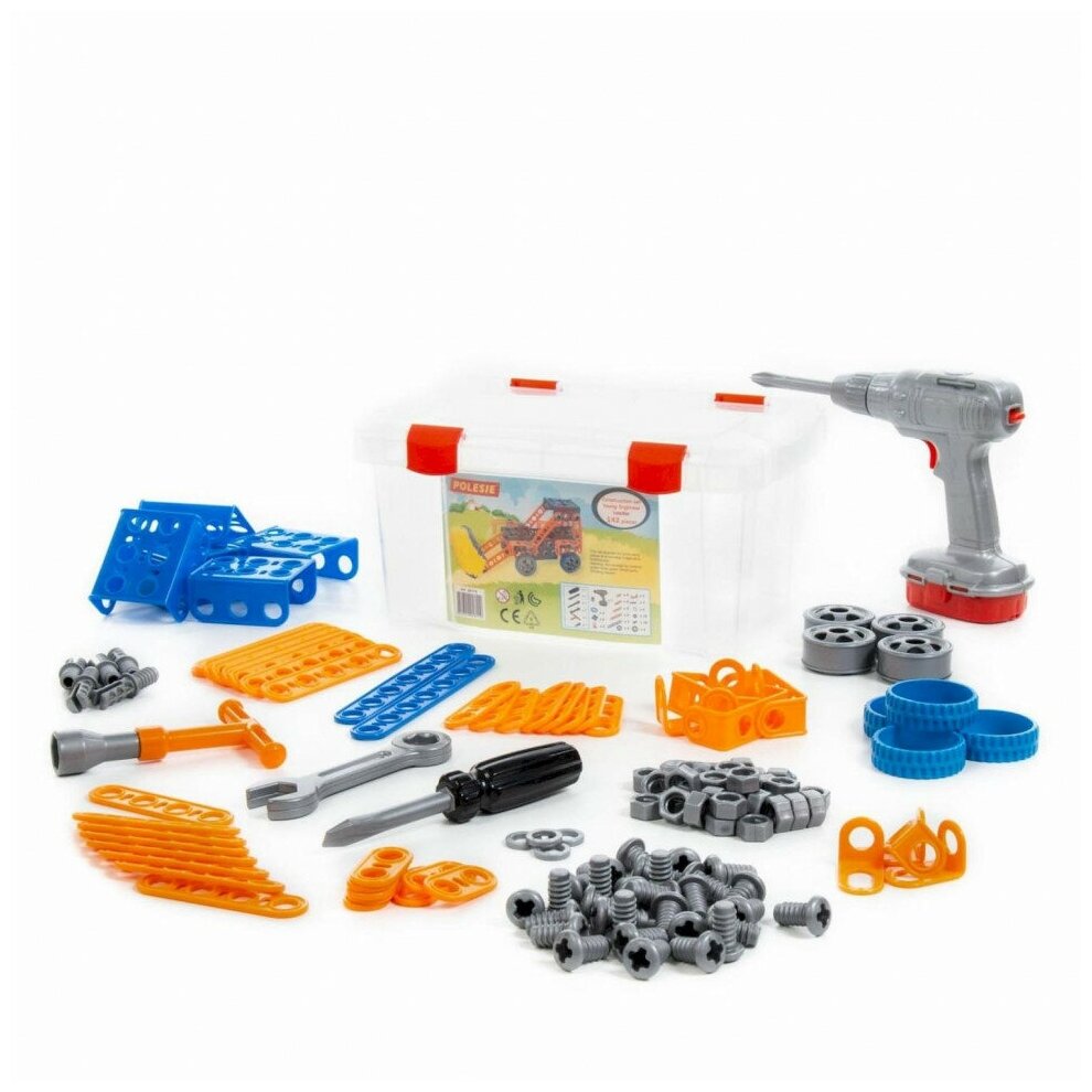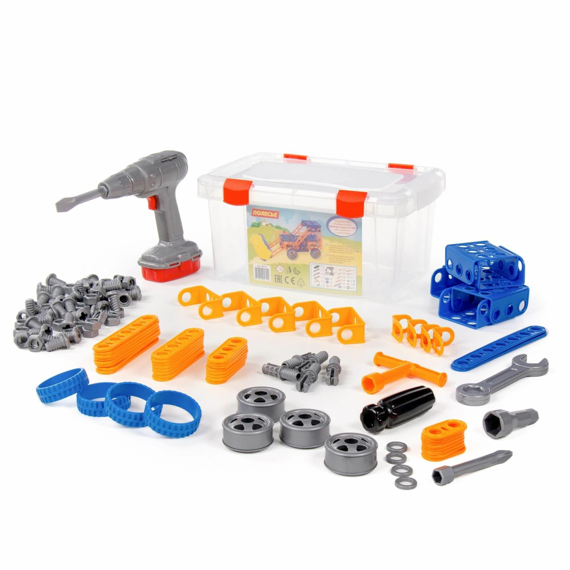Конструктор Полесье Изобретатель - Трактор-погрузчик №1, 142 элемента непременно понравится ребенку! Конструктор «Изобретатель» — отличается особым функционалом. Элементы выполнены в виде планок, пазы которых соединяются при помощи болтов и гаек. В комплект конструктора входят подробные инструкции, следуя которым можно собрать модели, представленные на упаковке игрушки. При этом ребёнок будет развивать усидчивость и внимание. Игра с данной серией конструкторов не ограничивается сборкой моделей по инструкции, дети всегда могут попробовать создать что-то новое, используя свою фантазию, пространственное и ассоциативное мышление. В комплекте с конструктором идёт реалистичный шуруповёрт, работающий от батареек. Игры с конструктором могут определить будущую профессию малыша, раскрыв в нём творческий потенциал. Все конструкторы серии «Изобретатель» совершенно разные, поэтому из них можно собрать целую коллекцию, которая превратится в творческую мастерскую Вашего ребёнка!* Материал: пластик* Размер: 30,5x20x14,5* Количество элементов: 142
