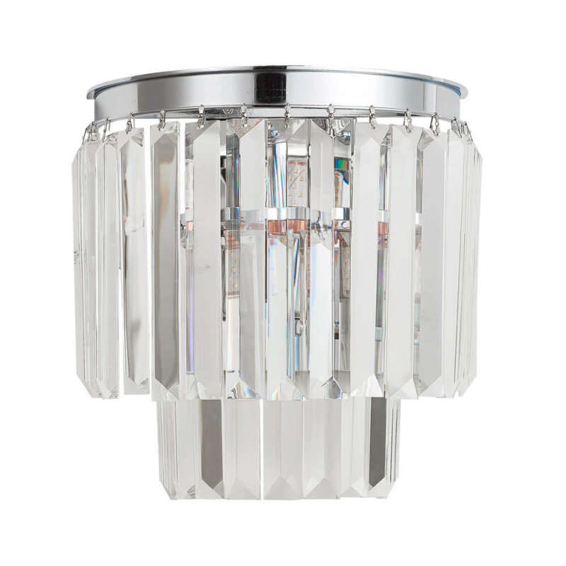 Divinare Изысканная модель от итальянской компании Divinare относится к коллекции Nova и отлично подойдет для установки на стену больших залов, оформленных в современном стиле. Производитель Divinare рекомендует использовать для устройства лампы накаливания с цоколем E14 и мощностью 40 W. Прибор произведен с использованием материалов: хрусталь и металл. Основным цветом товара является хромовый.