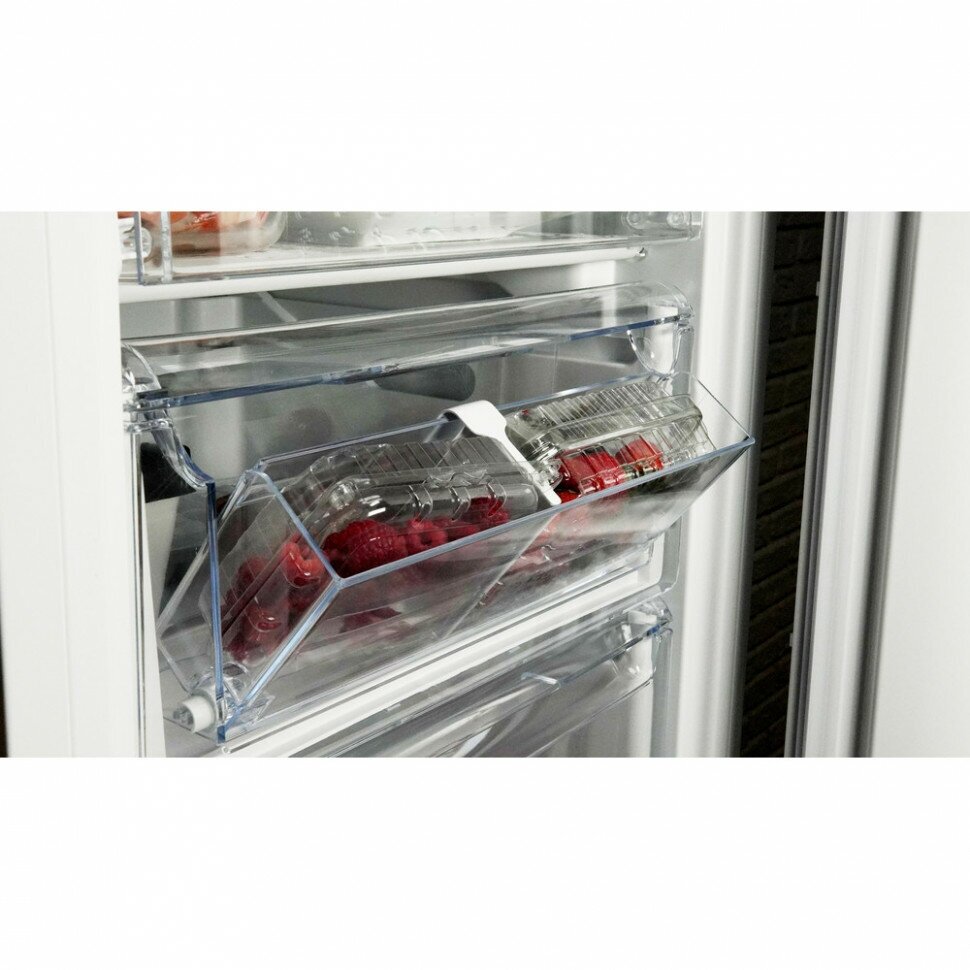 Модели присвоен климатический класс SN-T. Корпус выполнен из металла и пластика в белом цвете, а ящики – из прозрачного пластика. Морозильная камера обладает размерами 175х60х64 см. Ее вес составляет 68 кг.
