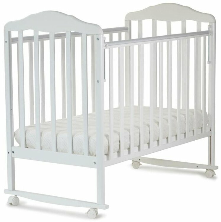 В данной модели предусмотрены полозья для качания. Размер спального места 120х60. Съемные колеса,отсутствует маятниковый механизм качания.