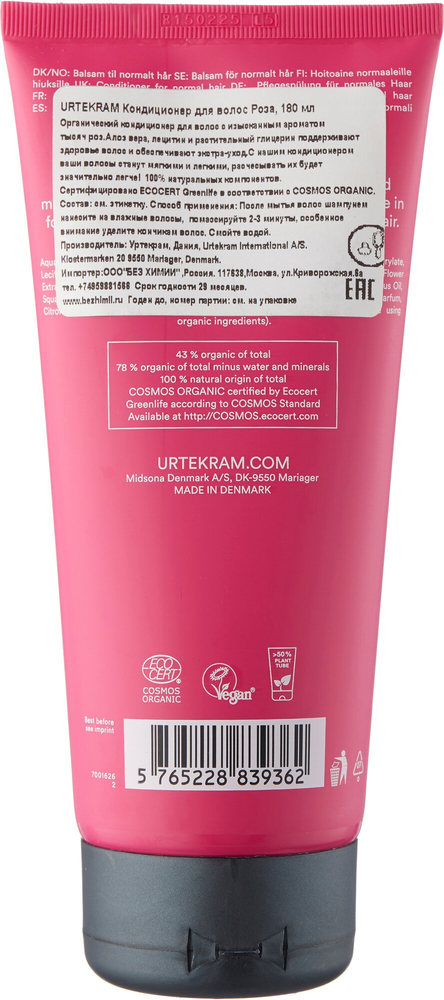 Кондиционер Urtekram Роза 180 мл (5765228839362)