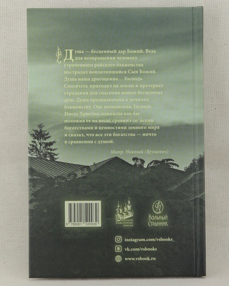 Сборник «Душа. Ее жизнь и законы» ответит на вопросы: что такое душа и чем она живет, как бороться с грехом и исправлять свое сердце. В этих листках читателю откроется деятельный опыт святых отцов и современных подвижников о том, как строится сокровенная духовная жизнь человека.