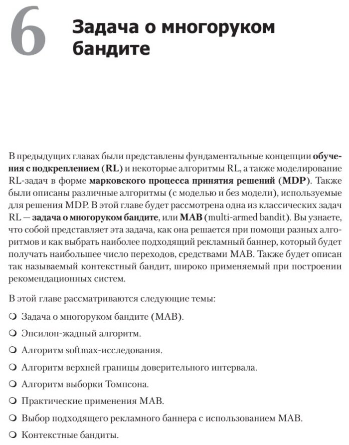 3. Актуальность. Книга содержит актуальную информацию о последних достижениях в области глубокого обучения с подкреплением и, таким образом, поможет читателю оставаться в курсе последних тенденций.