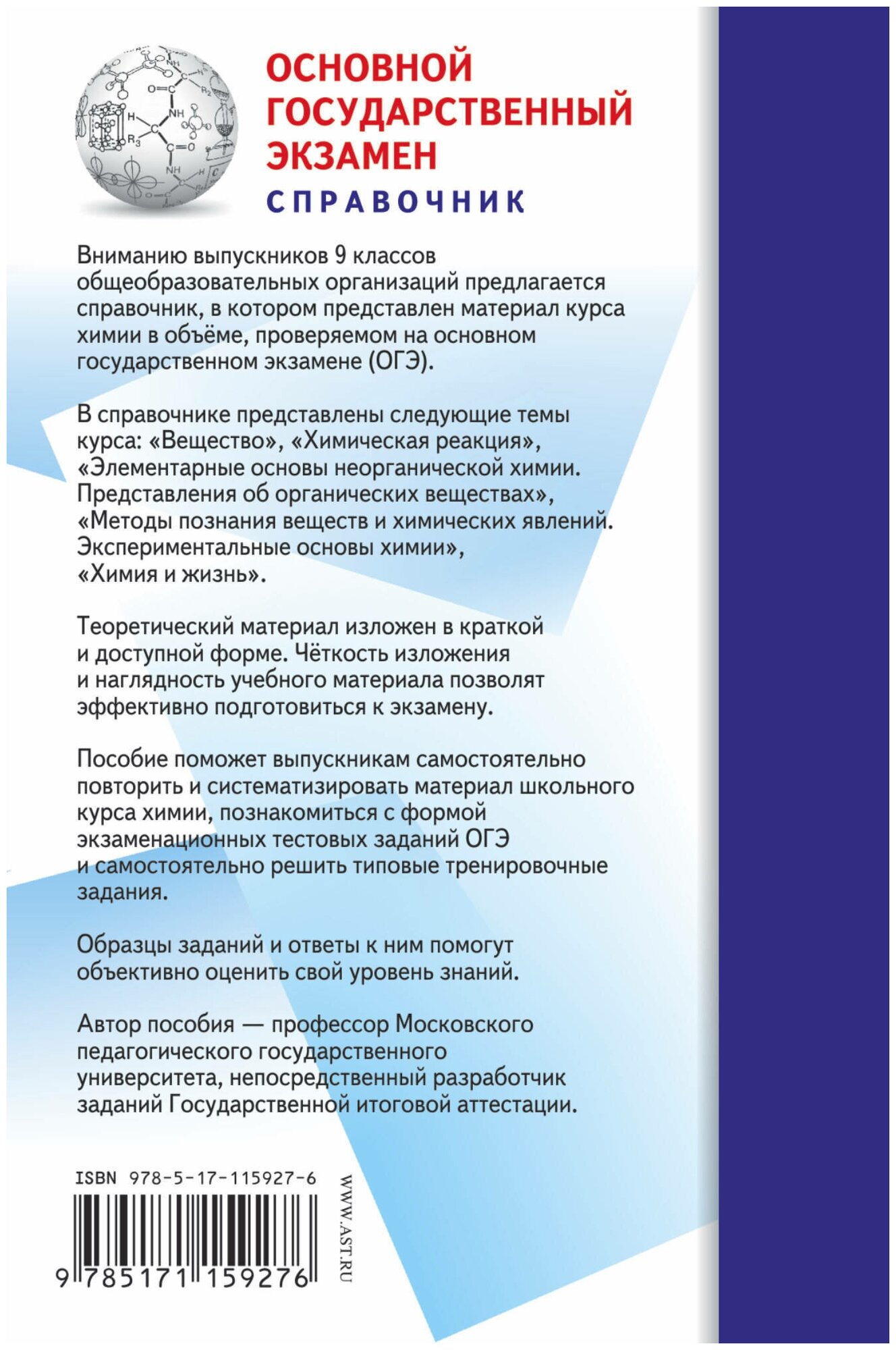 Новый справочник содержит весь теоретический материал по курсу химии, необходимый для сдачи основного государственного экзамена в 9 классе. Он включает в себя все элементы содержания, проверяемые контрольно-измерительными материалами, и помогает обобщить и систематизировать знания и умения за курс средней (полной) школы.