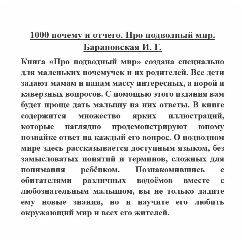 Сервис сравнения цен СкидкаГИД предлагает сравнить цены на товар «Книга: 1000 почему и отчего. Про подводный мир (Барановская Ирина Геннадьевна); ООО "Издательство Астрель", 2019»
