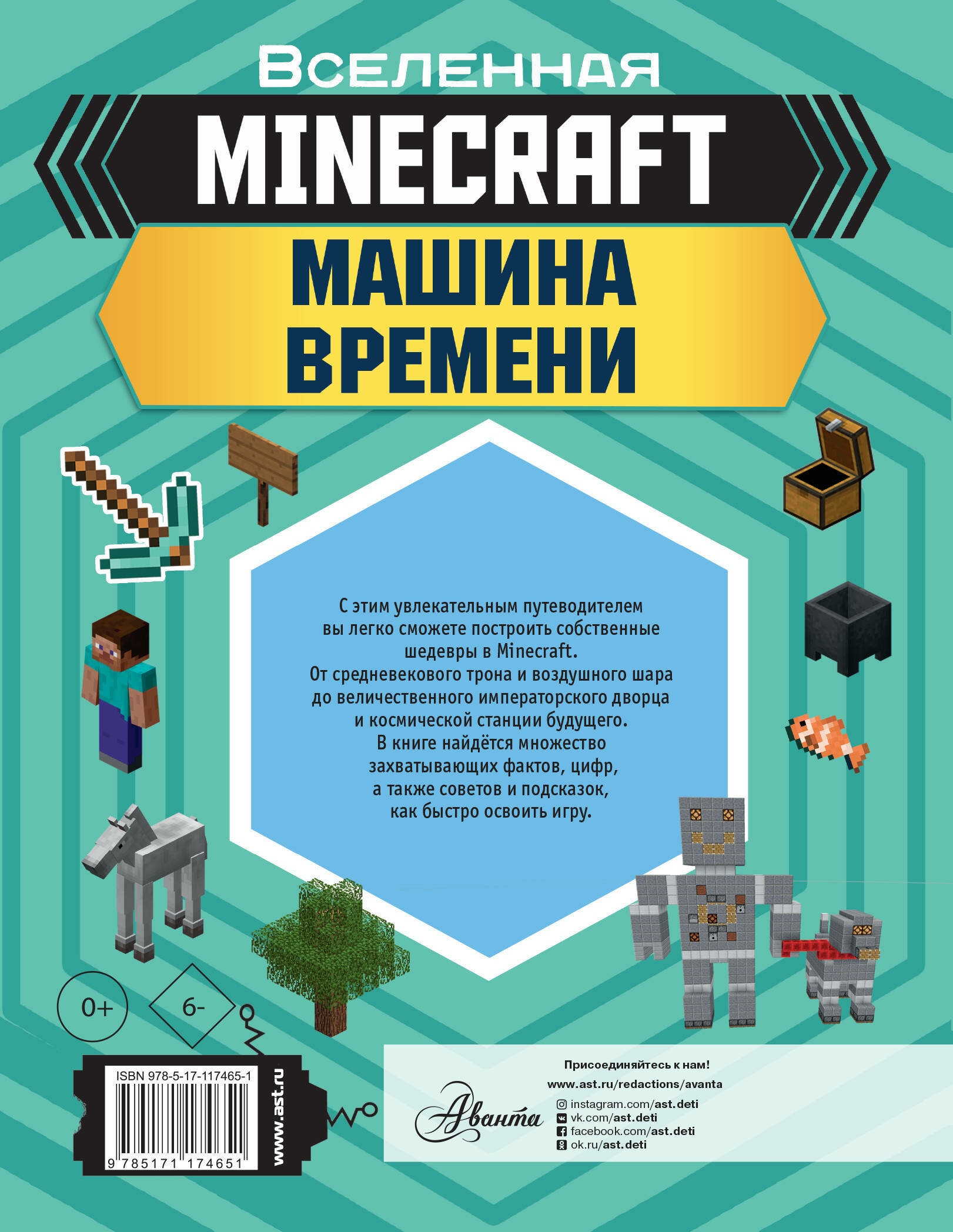 Книга "Minecraft: Машина времени" из серии "Вселенная Minecraft" отправит читателя в путешествие сквозь время и расскажет, как создать в Minecraft такие невероятные сооружения, как пиратский корабль, древние пирамиды, космический корабль, ракету и даже троянского коня!