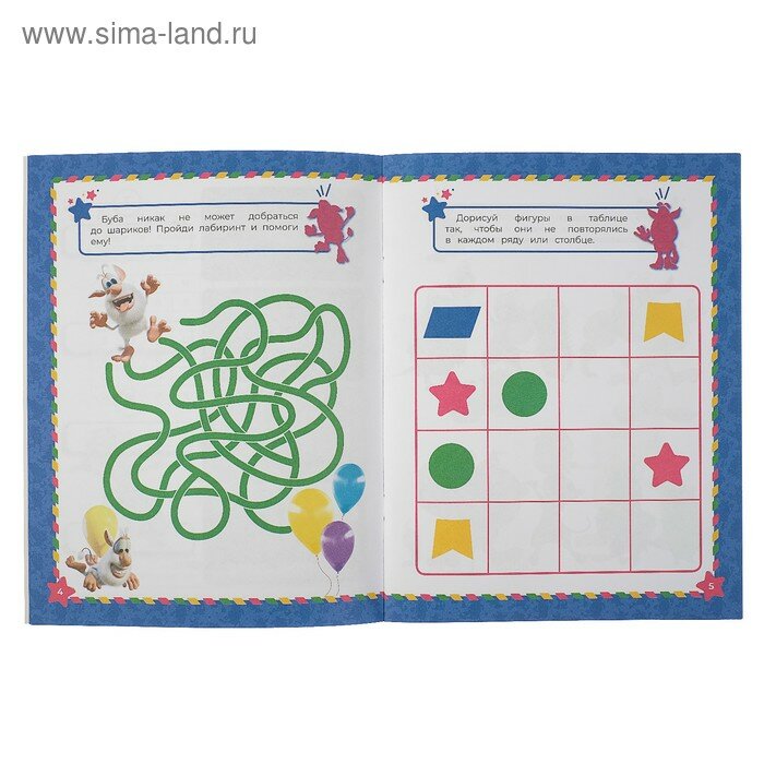 У нас есть книги, игрушка, одежда, рюкзак с бубой. Поэтому сын с удовольствием занимается логическими лабиринтами, рисует, лепит, вырезает, раскрашивает с бубой. Крупные буквы, удобно читать детям, яркие, красочные страницы, сочные наклейки разных размеров. Удобно клеить на разные поверхности. Купили сыну доску, клеит и на неё . Потом удобно снять и клей не остаётся.