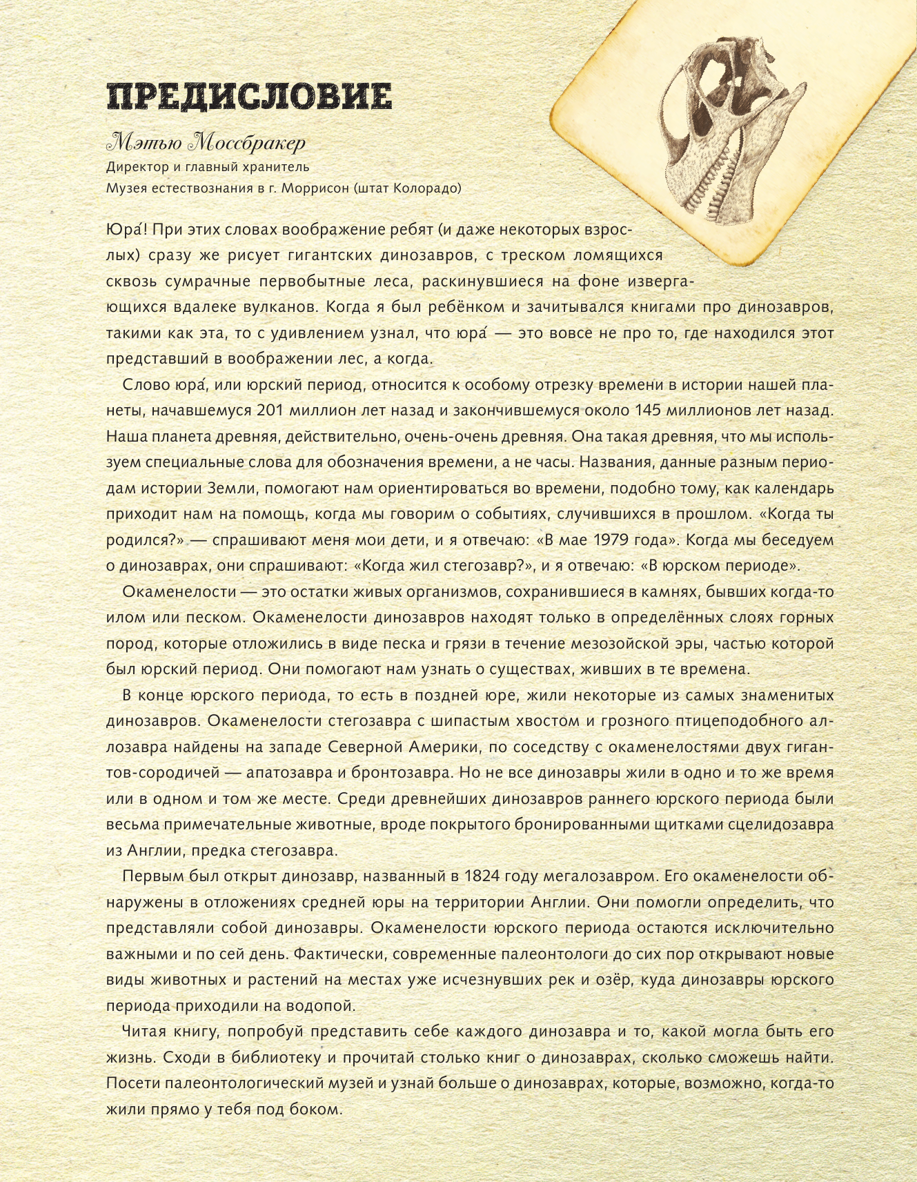 Эстетическое и тактильное наслаждение усиливаются от интеллектуального, потому что представленная информация не является сухим перечнем фактов. Мы отправляемся в путешествие с опытным гидом-экскурсоводом, который познакомит с давно минувшей эпохой, расскажет о ней и позволит заглянуть в неё своими глазами. Узнаем о наших былых соседях всё. От имени, научного названия, мест обитания, размеров, соотношения этих размеров с рядовым человеком до их характера.