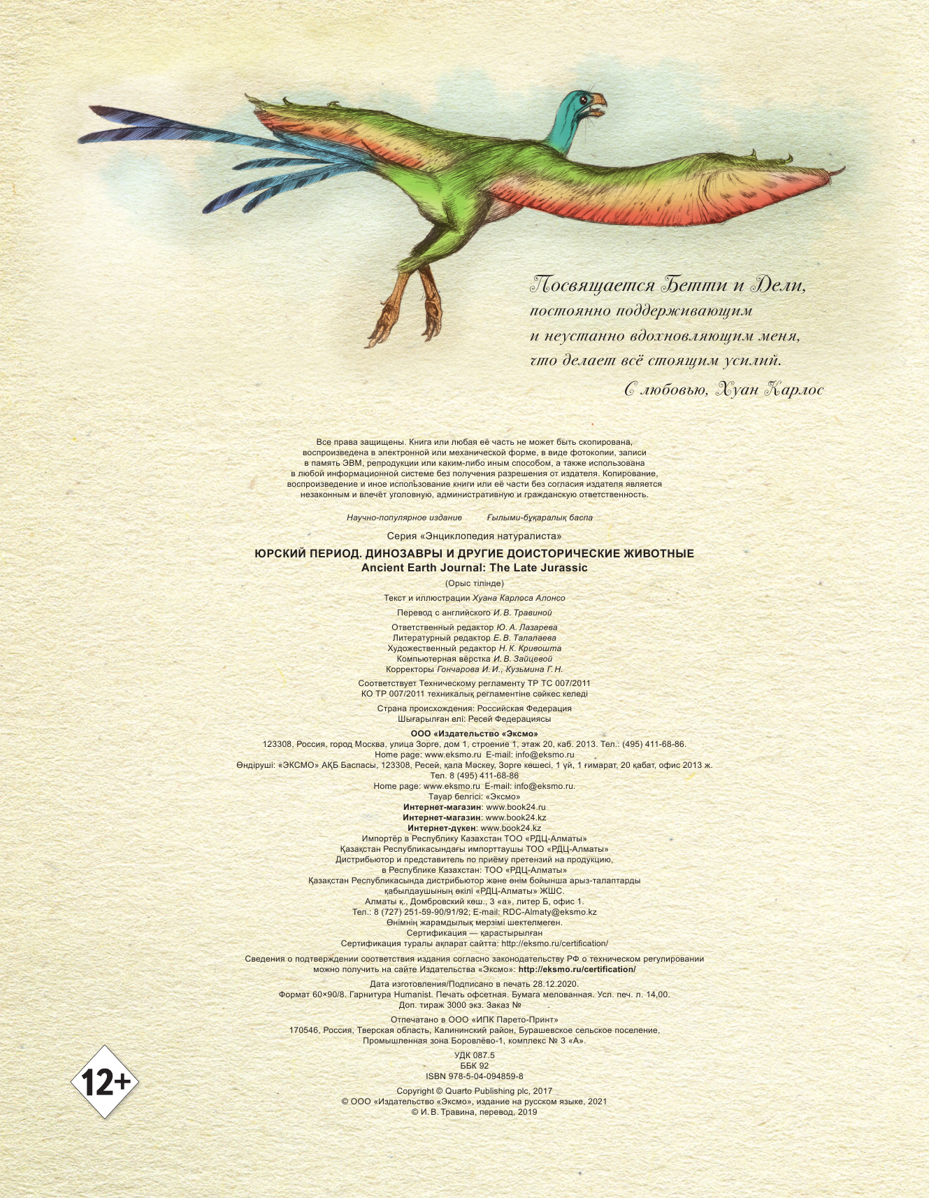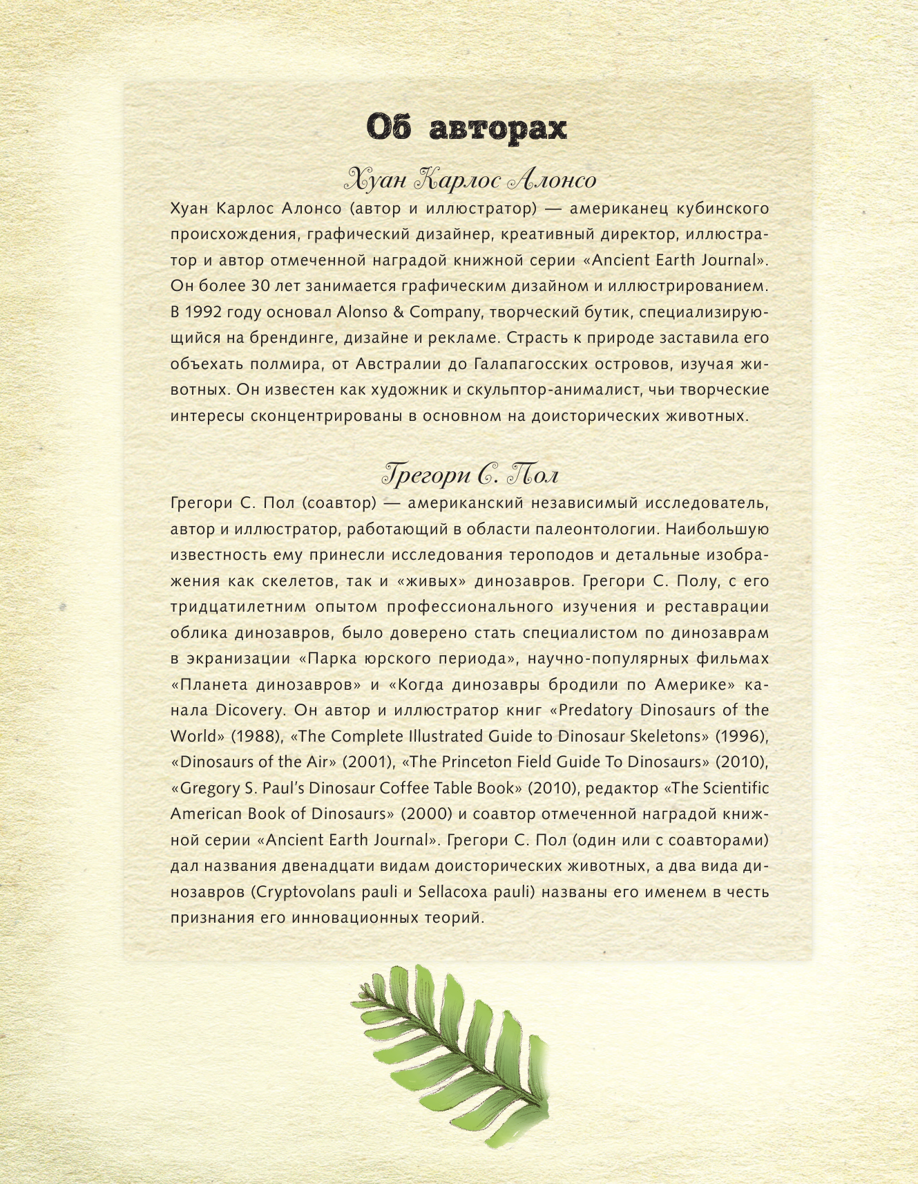Авторы и иллюстраторы: Хуан Карлос Алонсо – графический дизайнер, скульптор-анималист и Грегори Пол – автор и иллюстратор, работающий в области палеонтологии, который является крутым специалистом по динозаврам, был экспертом для «Парка Юрского периода» и науч-поп фильмов на канале Discovery.