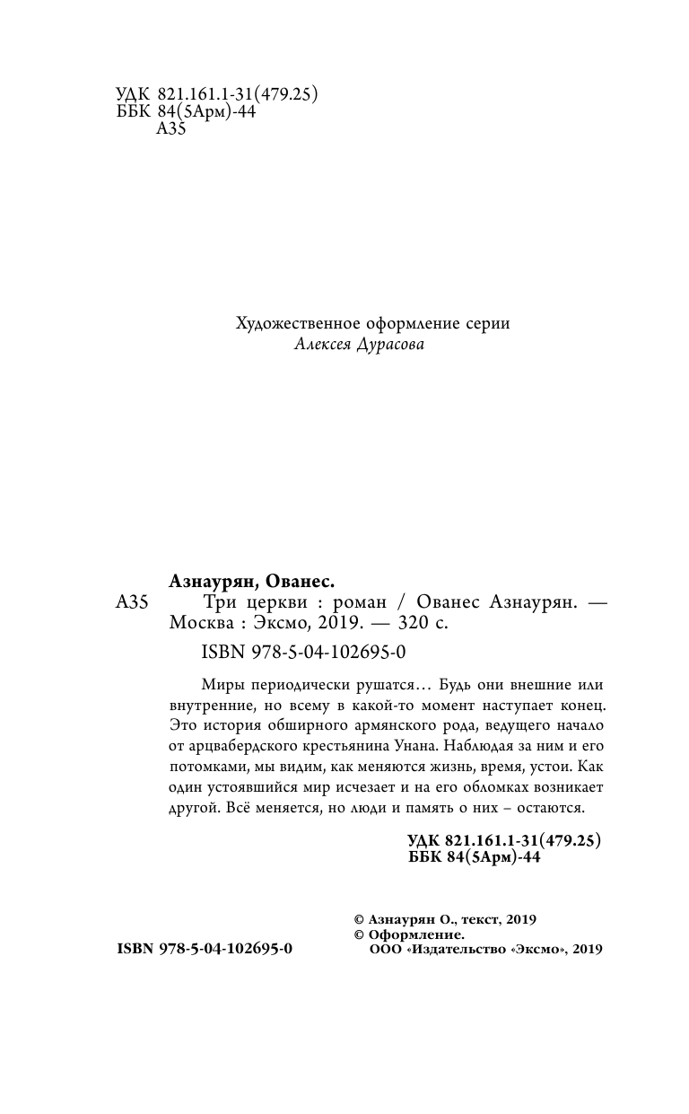 Книга: Три церкви (Азнаурян Ованес); ООО "Издательство "Эксмо", 2019