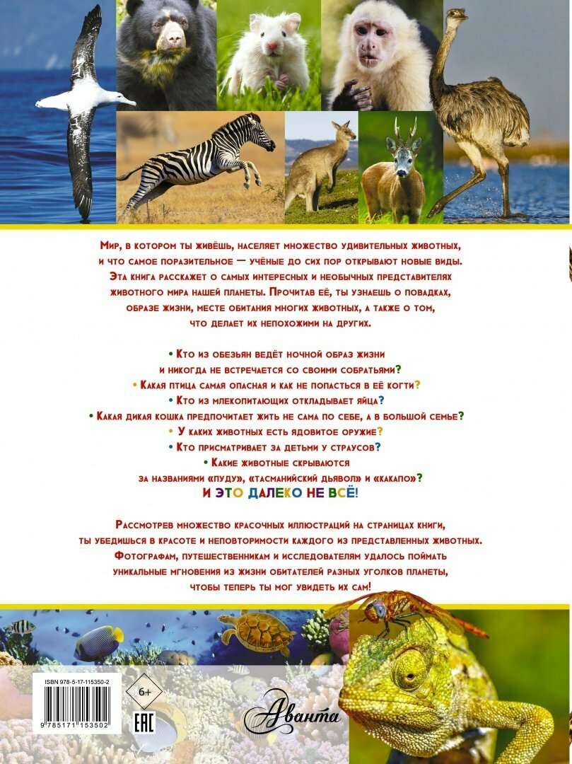Эта удивительная книга о животных, несомненно, привлечет внимание всех, кто любит природу нашей планеты и интересуется ее обитателями. Авторы издания постарались максимально отразить поразительное многообразие земной фауны. Уникальные яркие фотоснимки из самых разных уголков планеты помогут читателю представить животных в естественных условиях обитания, а важная информация и интересные факты обозначат место и роль каждого из них в современной живой природе.