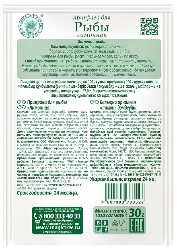 Приправа Волшебное дерево для рыбы лимонная 30г