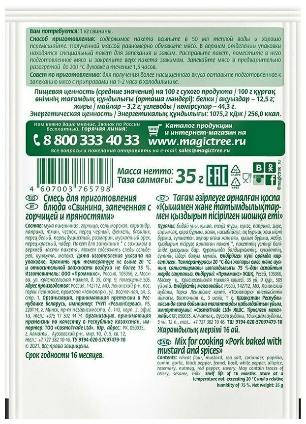 На сегодняшний день товар «Смесь Волшебное дерево для приготовления блюда Свинина запеченная с горчицей и пряностями 35г для свинины» можно купить с кешбеком в 1 магазине: Vprok (Перекресток)