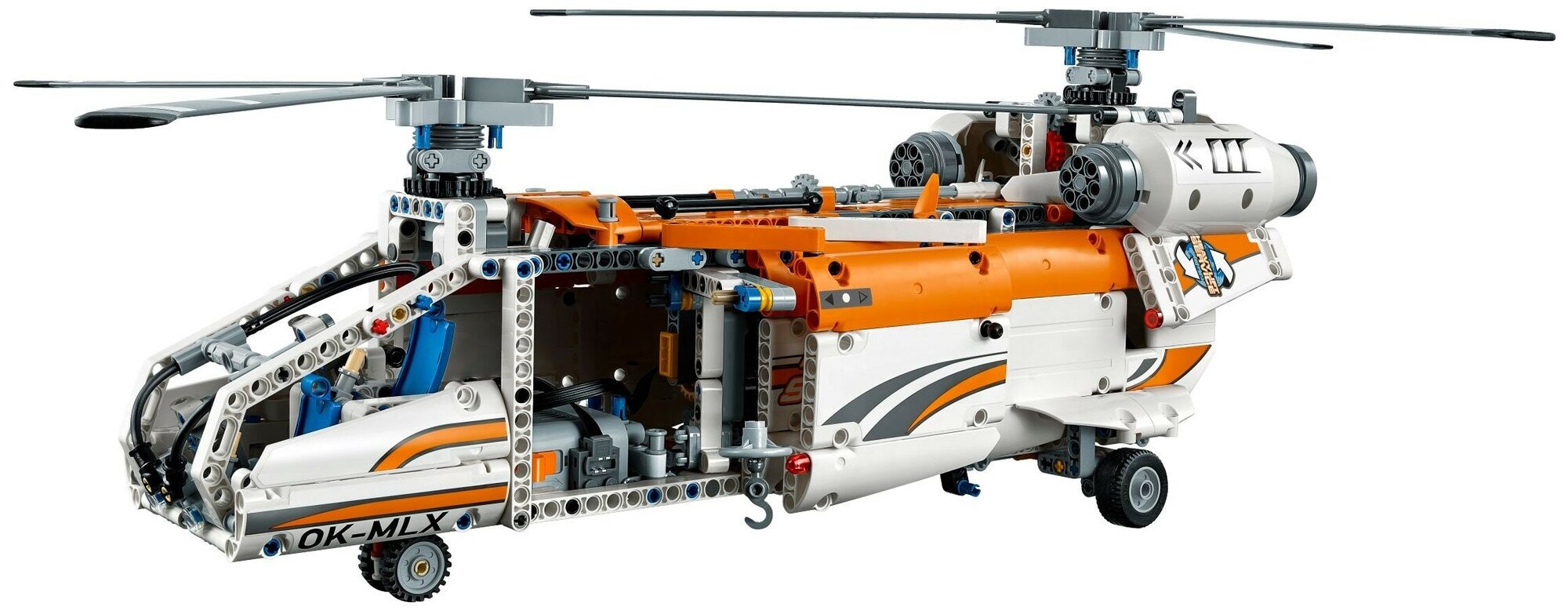 Собери и испытай замечательный Грузовой вертолет LEGO Technic! Эта огромная, надежная модель 2-в-1 включает аутентичные детали и интересные функции. Активируй входящий в комплект мотор Power Functions, чтобы привести в действие несущие винты противоположного вращения, спустить грузовую рампу, открыть двери грузового отсека, выдвинуть лебедку и поднять входящий в набор груз. Эта замечательная модель также включает подвижный хвостовой руль и подъемники, и разнонаправленное носовое колесо... она совсем как нас