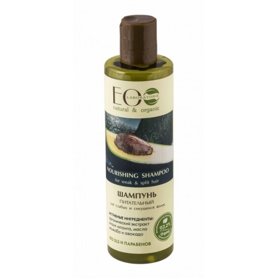 Шампунь для волос EO Laboratorie "Питательный" бережно очищает, активно питает и защищает волосы от негативных факторов окружающей среды (солнце, бассейн с хлорированной водой, отопительные приборы и т.д.), придает волосам эластичность и здоровый блеск. Глубоко питает волосы, укрепляя и восстанавливая секущиеся кончики. Активные ингредиенты: масло авокадо, органический экстракт иланг-иланга, масло жожоба.