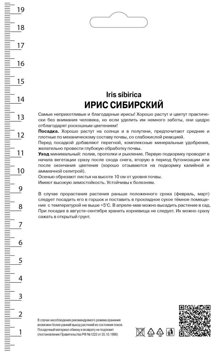 | Период посадки/посева в открытый грунт (месяц) | Апрель |
