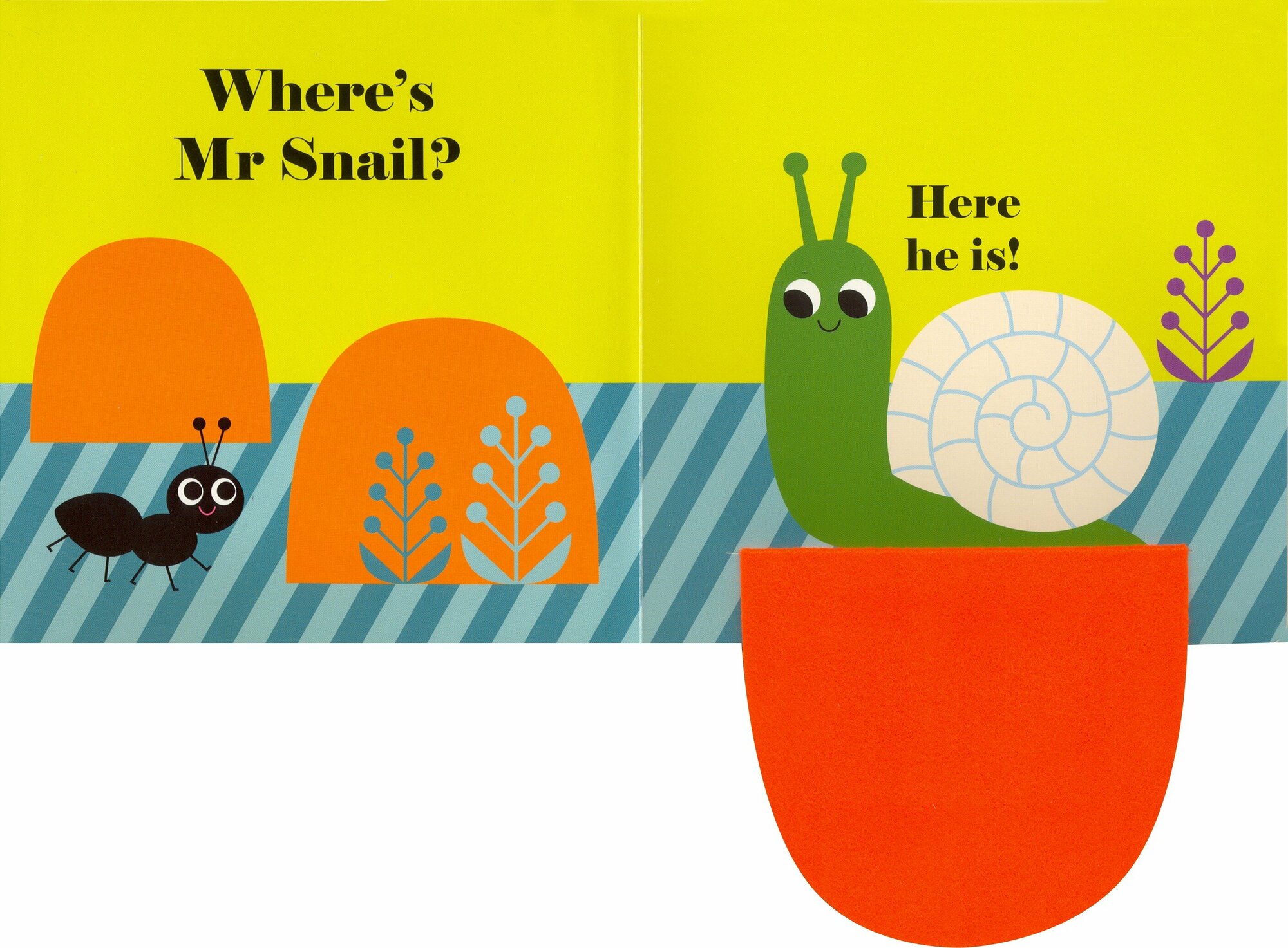 Five beautifully illustrated spreads show a series of friendly garden creatures hiding behind bright felt flaps. And there's a mirror on the final page! A perfect book to share with very little ones.