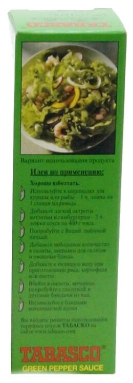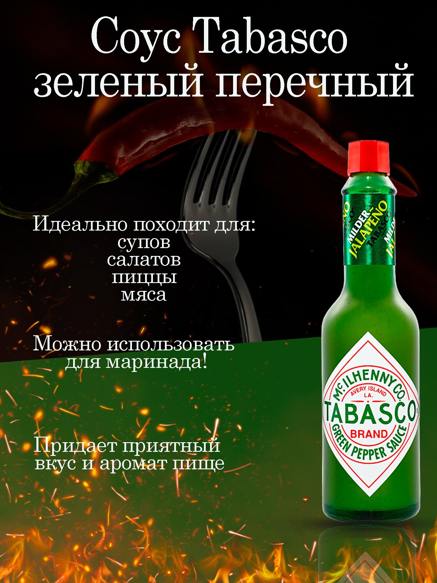 Соус Tabasco зеленый перечный 60 мл – это незаменимый атрибут настоящего гурмана. Продукт отличается высоким качеством и гарантирует яркий вкусовой опыт. Он придает особый шарм блюдам из мяса.